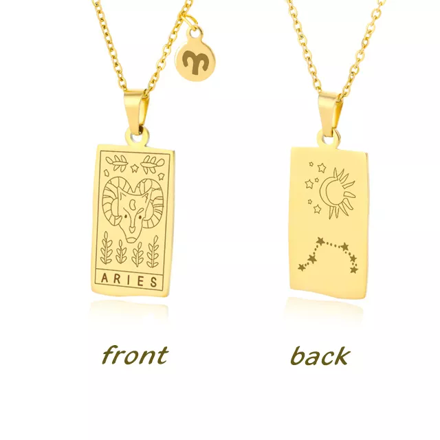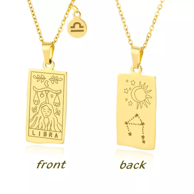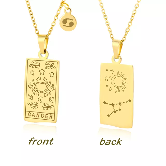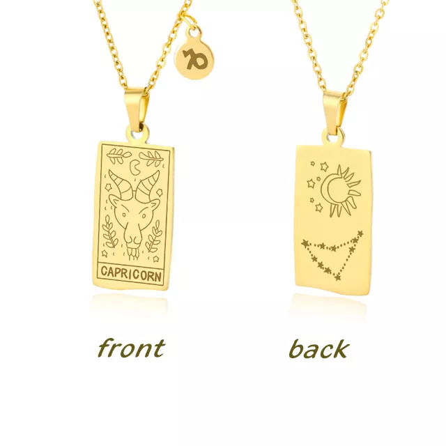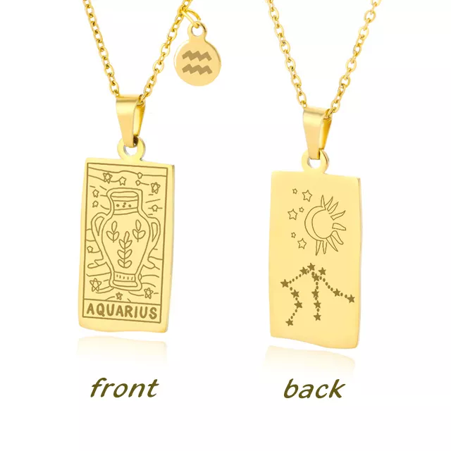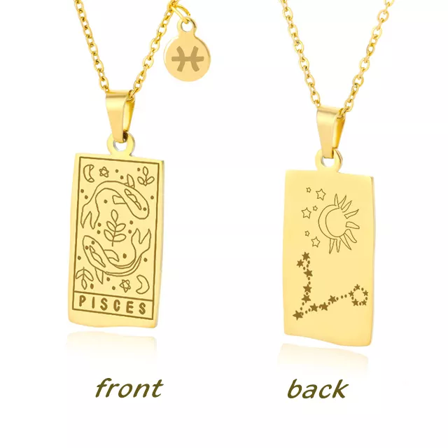 • Design: Features a square pendant with a beautifully etched zodiac sign, inspired by the intricate designs of Tarot cards, offering a unique, personal touch.