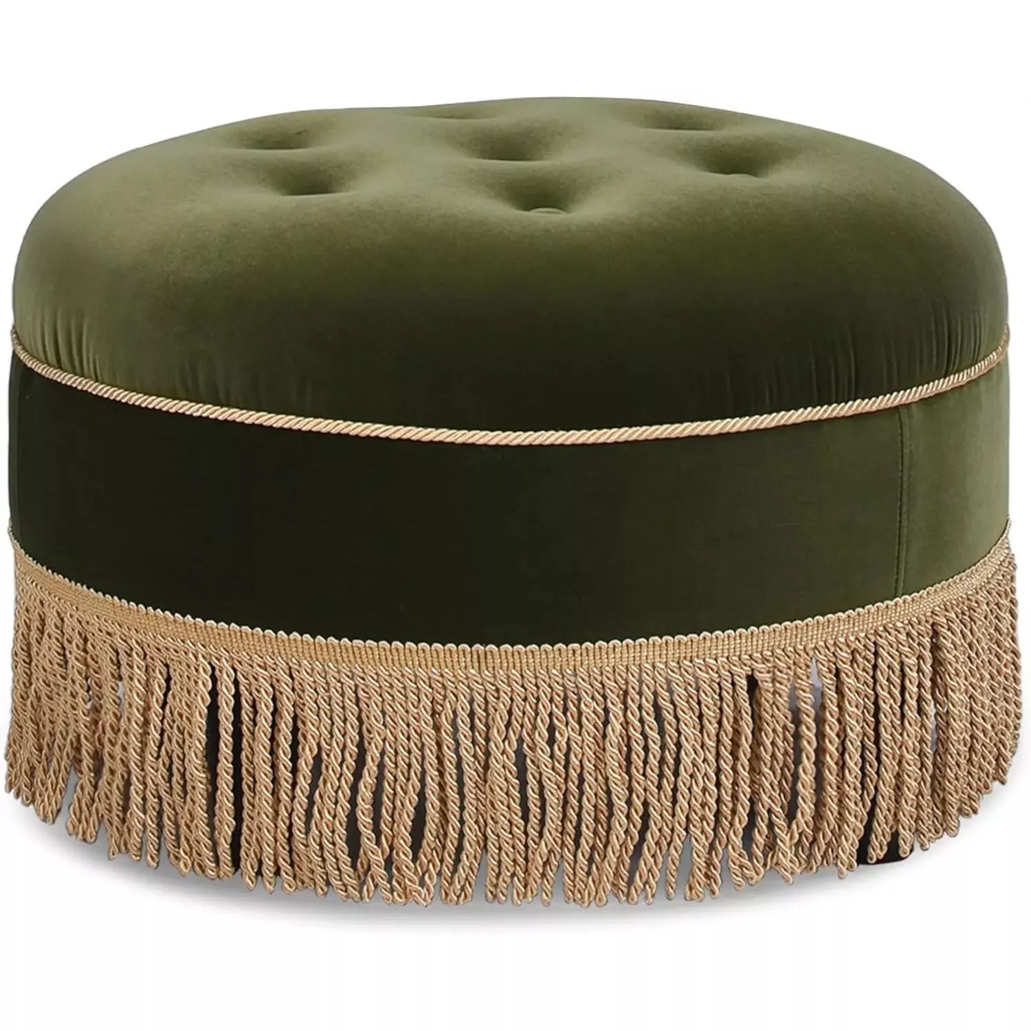 • Vintage Design: The ottoman is accented with a tassel rope bullion fringe and lightly buttoned seat, giving it a vintage flair that complements both modern and traditional decor.