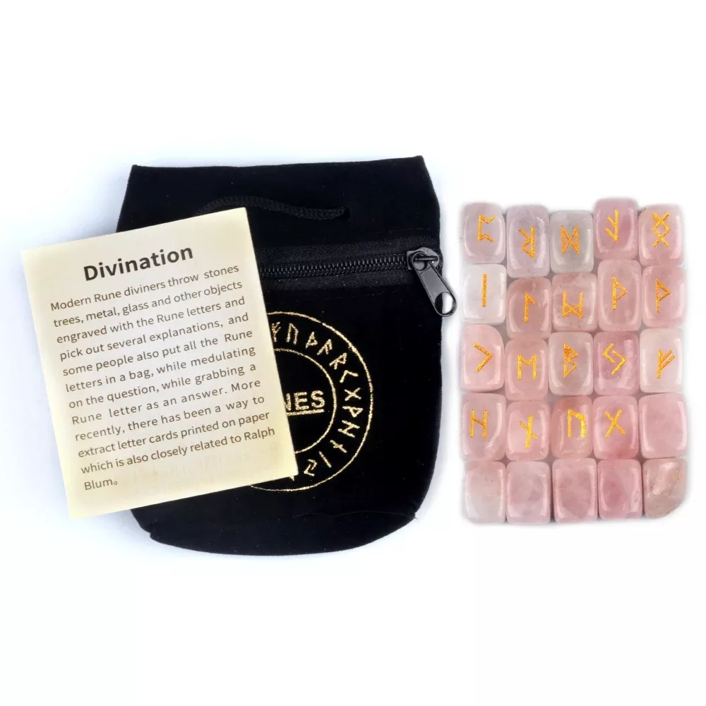 25pcs Natural Crystal Agate Runes, Amethysts, Rose Quartz Jewelry Beads