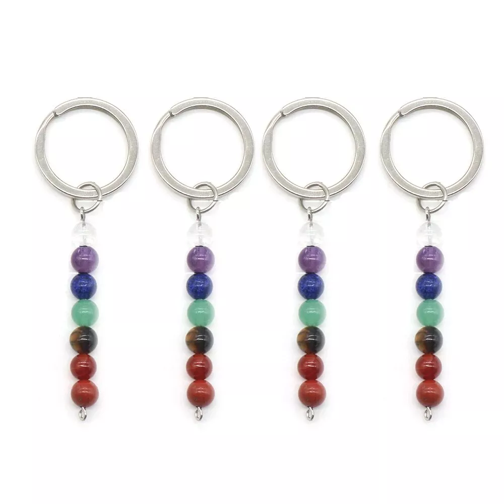 4pcs Set Natural Chakra Quartz Bead Keychains for DIY Jewelry & Luggage Pendants
