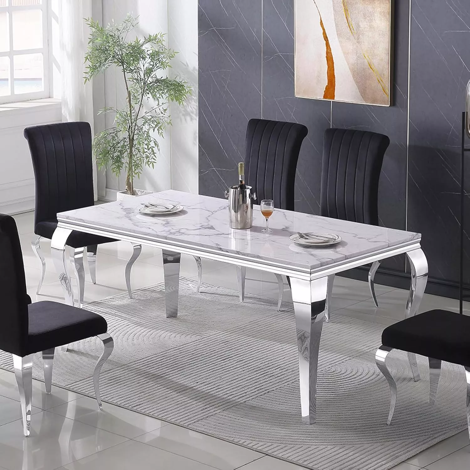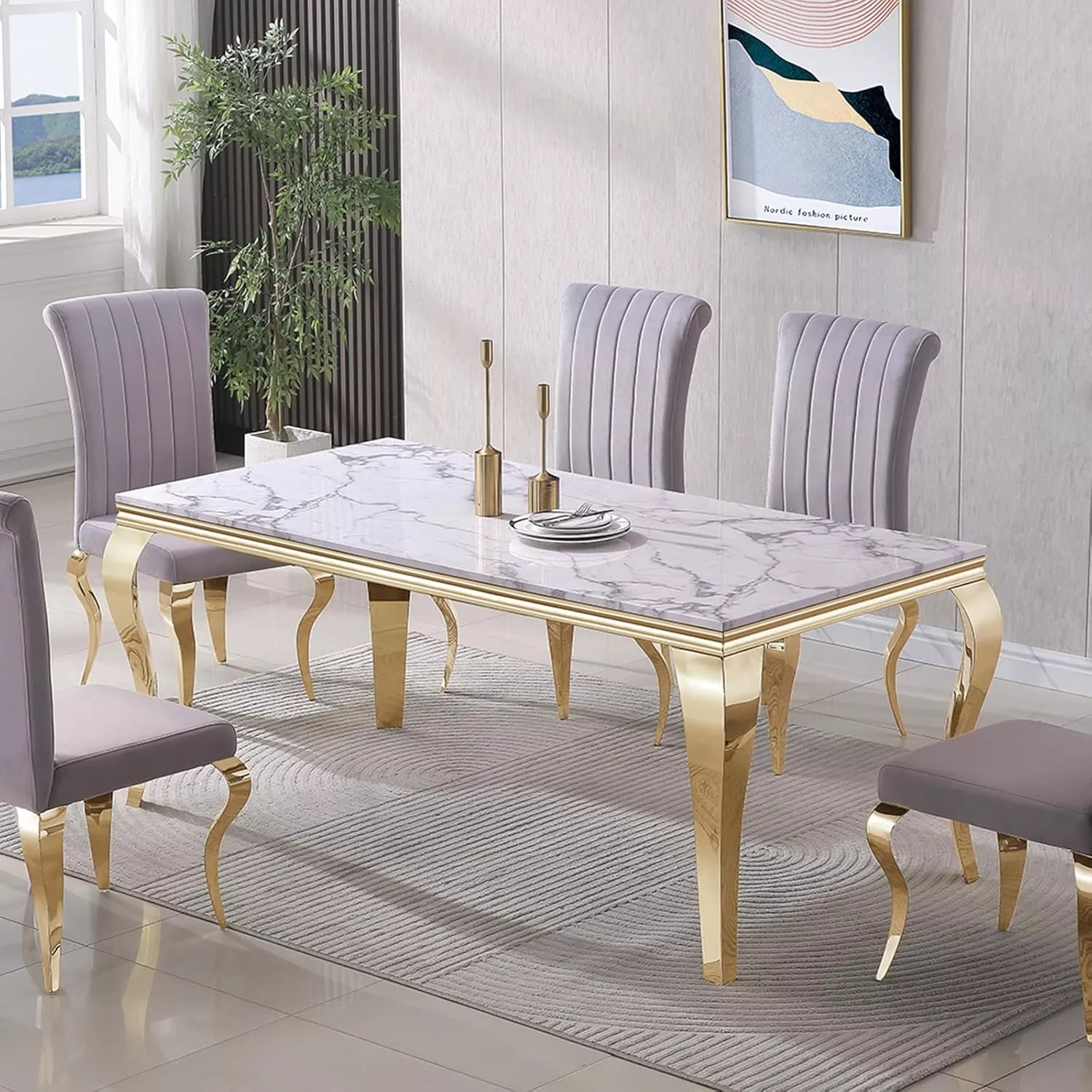 • Durable Stainless Steel Base: The double S-shaped gold stainless steel legs provide a sturdy and modern foundation, ensuring lasting durability and a touch of elegance to any dining room.
