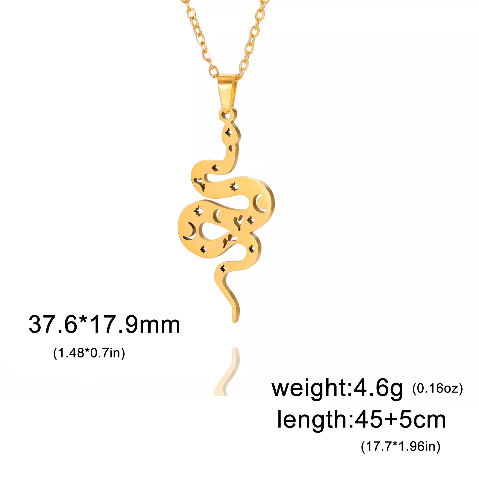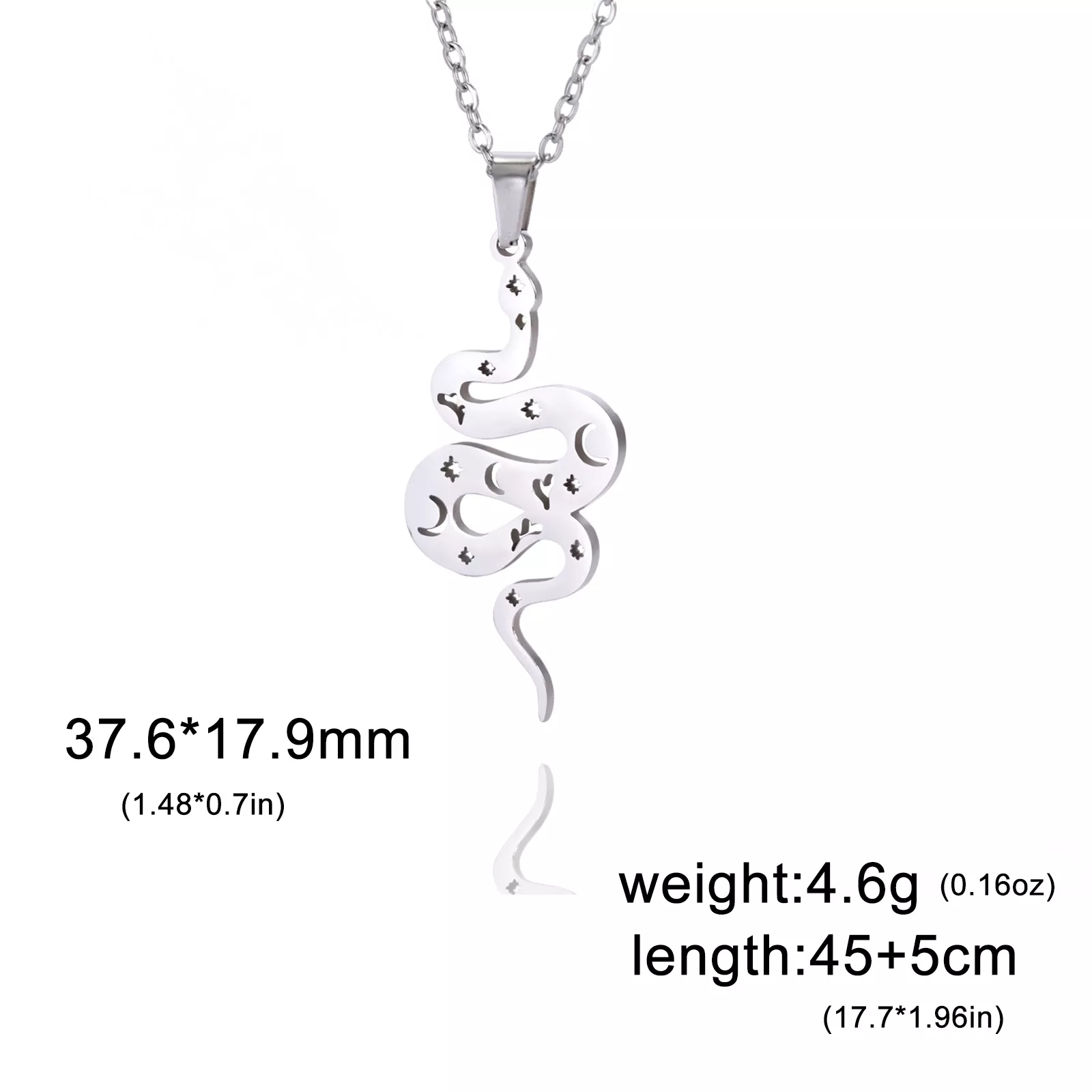 • Pendant Size: The snake pendant measures 1.35 inches by 1.44 inches, offering a noticeable yet refined presence.