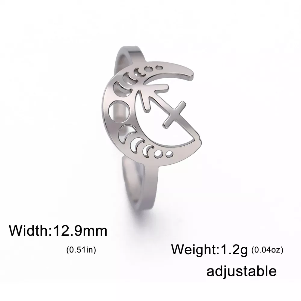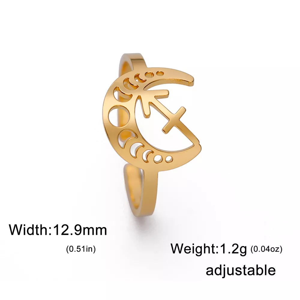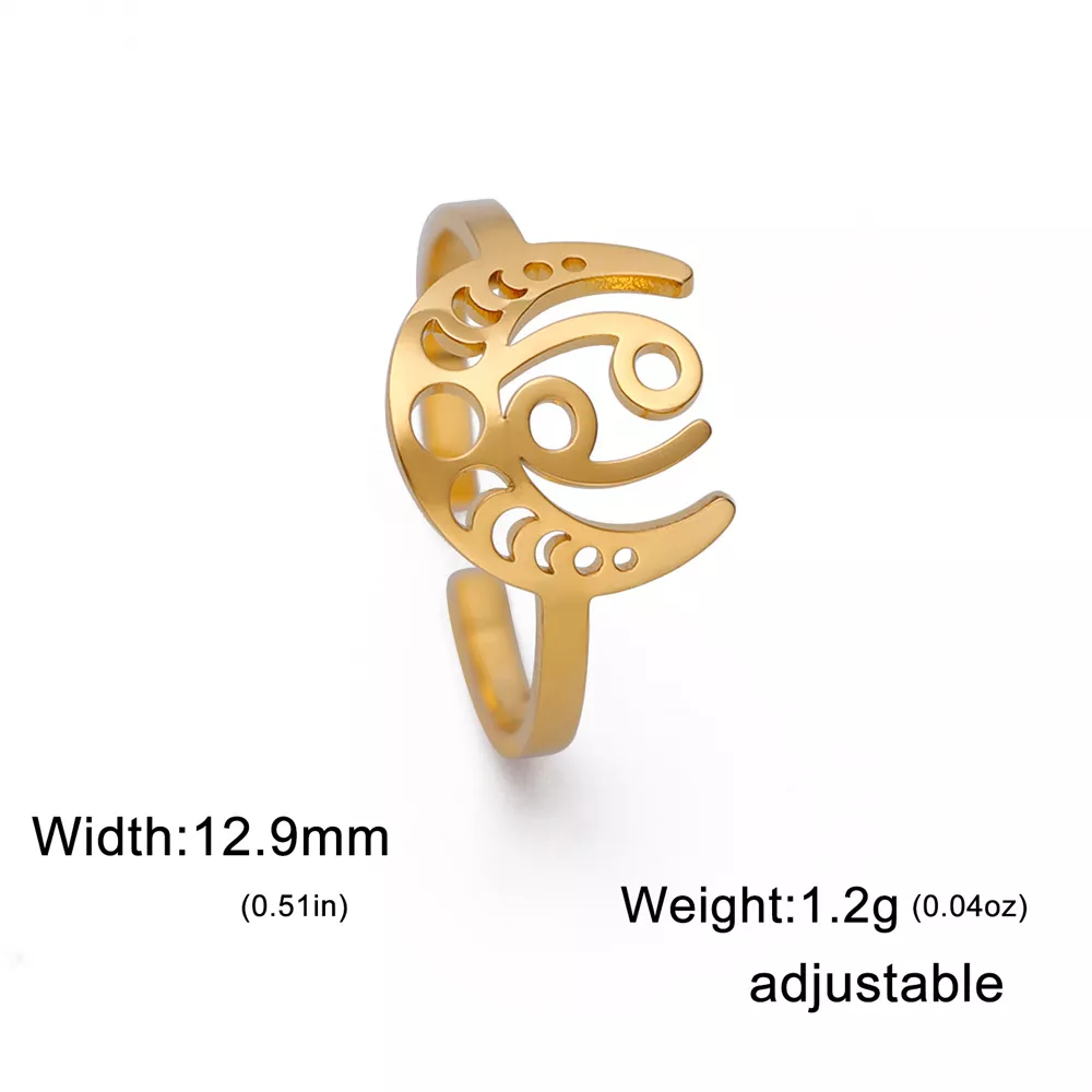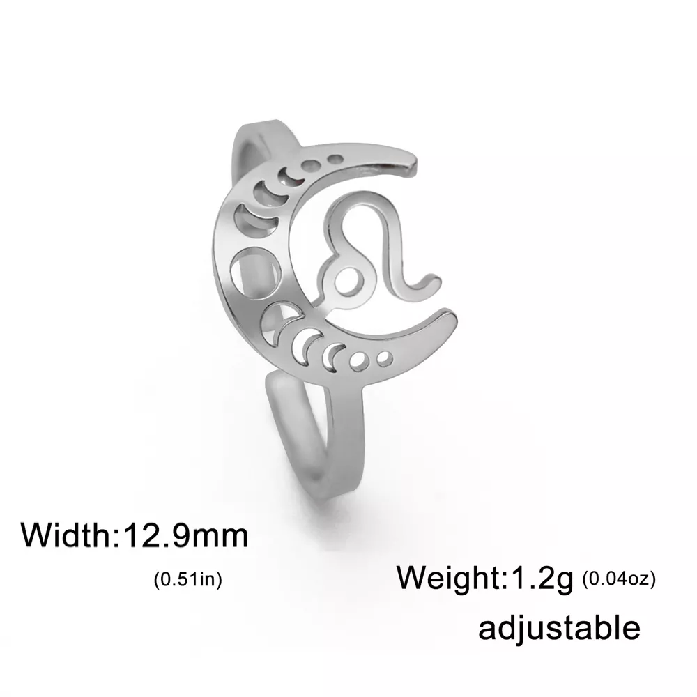 Constellation Crescent Moon Adjustable Ring – 12 Zodiac Signs Stainless Steel Fashion Jewelry