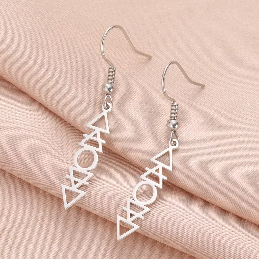 Connect with the elemental forces of nature with these captivating Element Symbols Drop Earrings. Featuring the iconic alchemical symbols for Fire, Earth, Water, and Air, these earrings offer a stylish and spiritual accessory that speaks to your inner strength and connection with the natural world. Whether you’re drawn to the bold power of fire, the grounding nature of earth, the flow of water, or the freedom of air, these earrings allow you to carry the energy of the four elements with you. Crafted from durable stainless steel, they are designed to be both a powerful talisman and a fashionable addition to your jewelry collection.