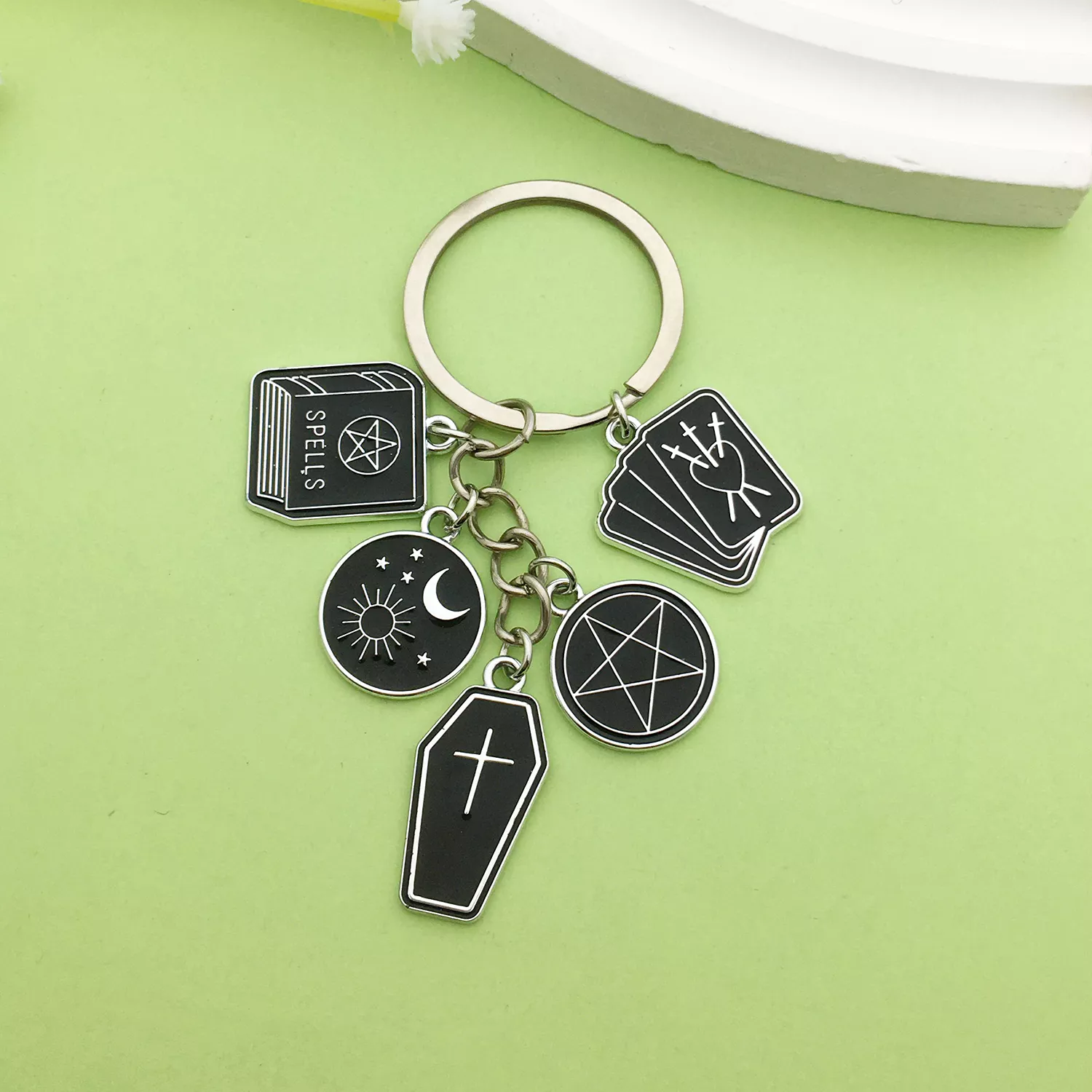 Fashion Tarot Keychain Black Magic Book Alloy Enamel Key Ring Ornament