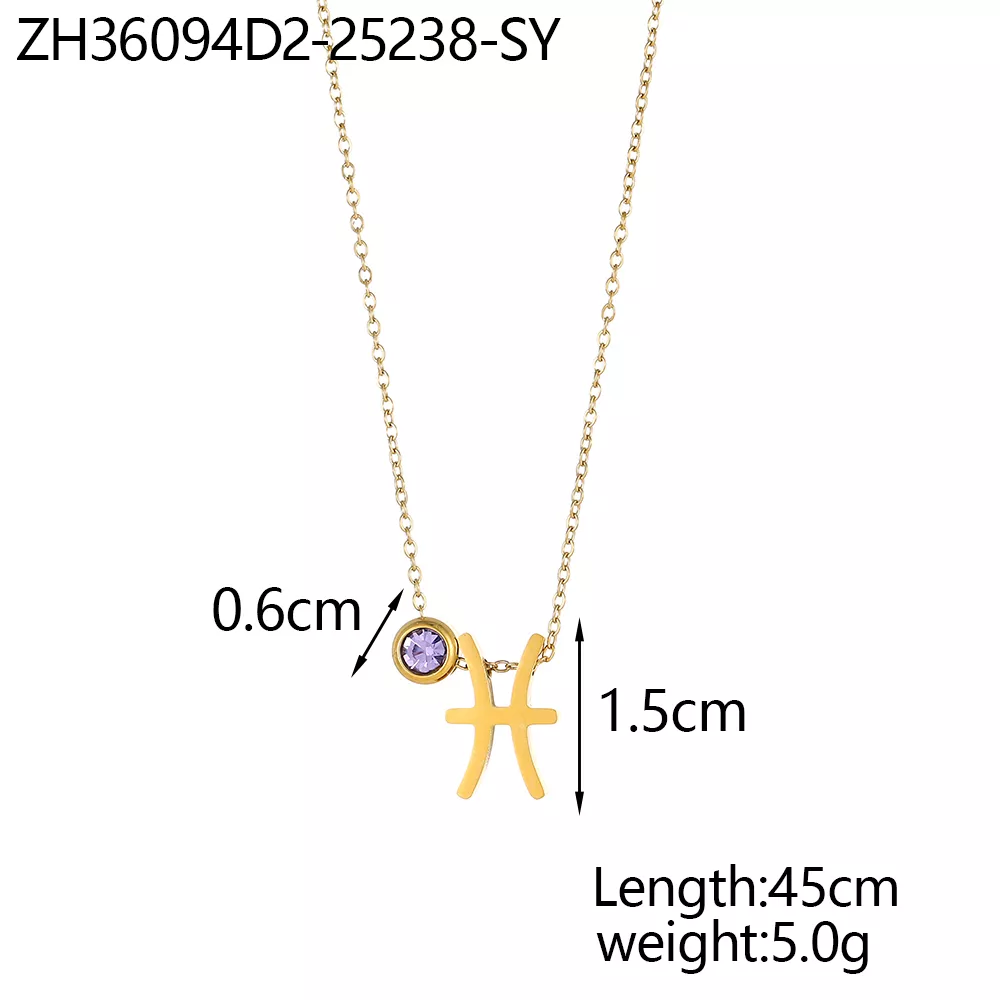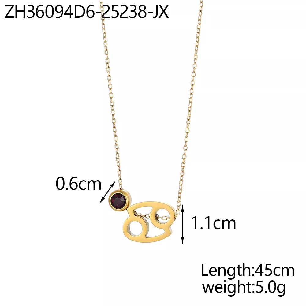 Made with high-quality stainless steel and finished in radiant gold plating, the necklace offers a charming balance of durability and delicate beauty. The centerpiece of the necklace is a finely crafted zodiac sign pendant adorned with a sparkling zircon birthstone — making it the perfect conversation starter at any party or gathering. Its smooth, hypoallergenic finish ensures all-day comfort and style without compromise.