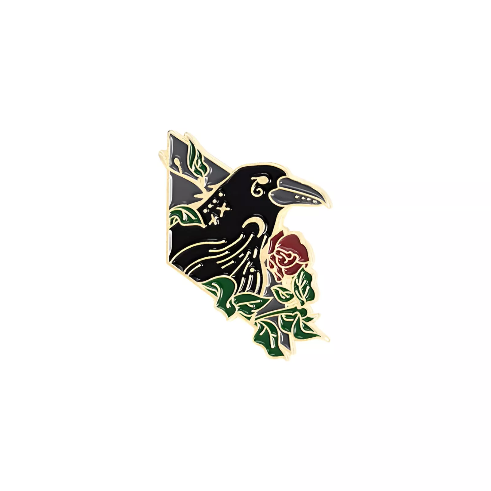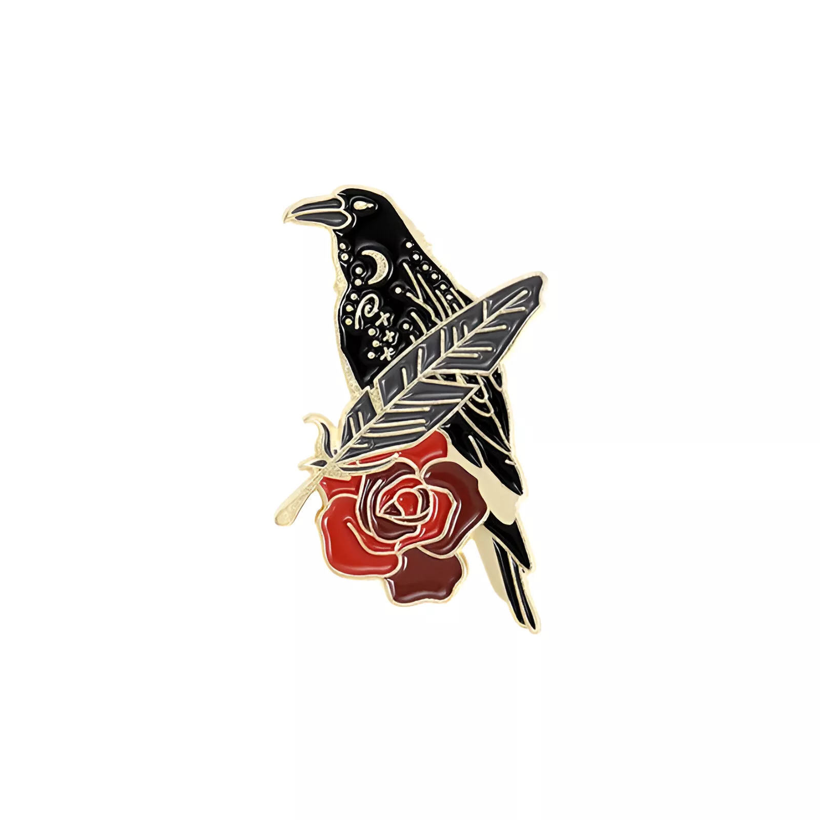 Make a bold statement with the Gothic Crow Enamel Brooch – a captivating blend of mystery, style, and symbolism. Featuring a black crow perched among feathers, roses, and a crescent moon, this striking accessory adds a unique edge to your outfit. Whether you’re drawn to gothic fashion, adore Halloween aesthetics, or love collecting unique lapel pins, this brooch is a must-have addition to your accessory collection.