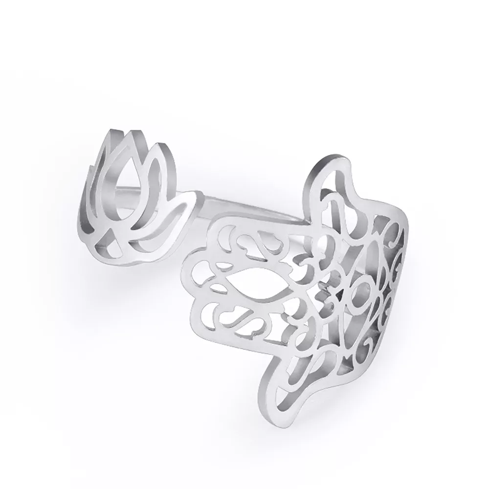 Hamsa Hand of Fatima Lotus Evil Eye Adjustable Stainless Steel Wedding Ring