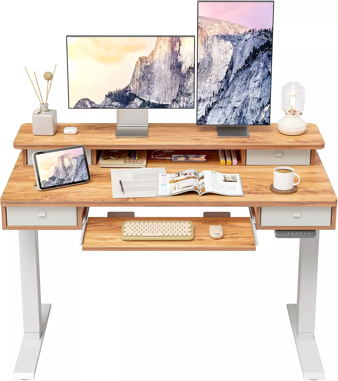 Height Adjustable Electric Standing Desk with Drawers and Keyboard Tray
