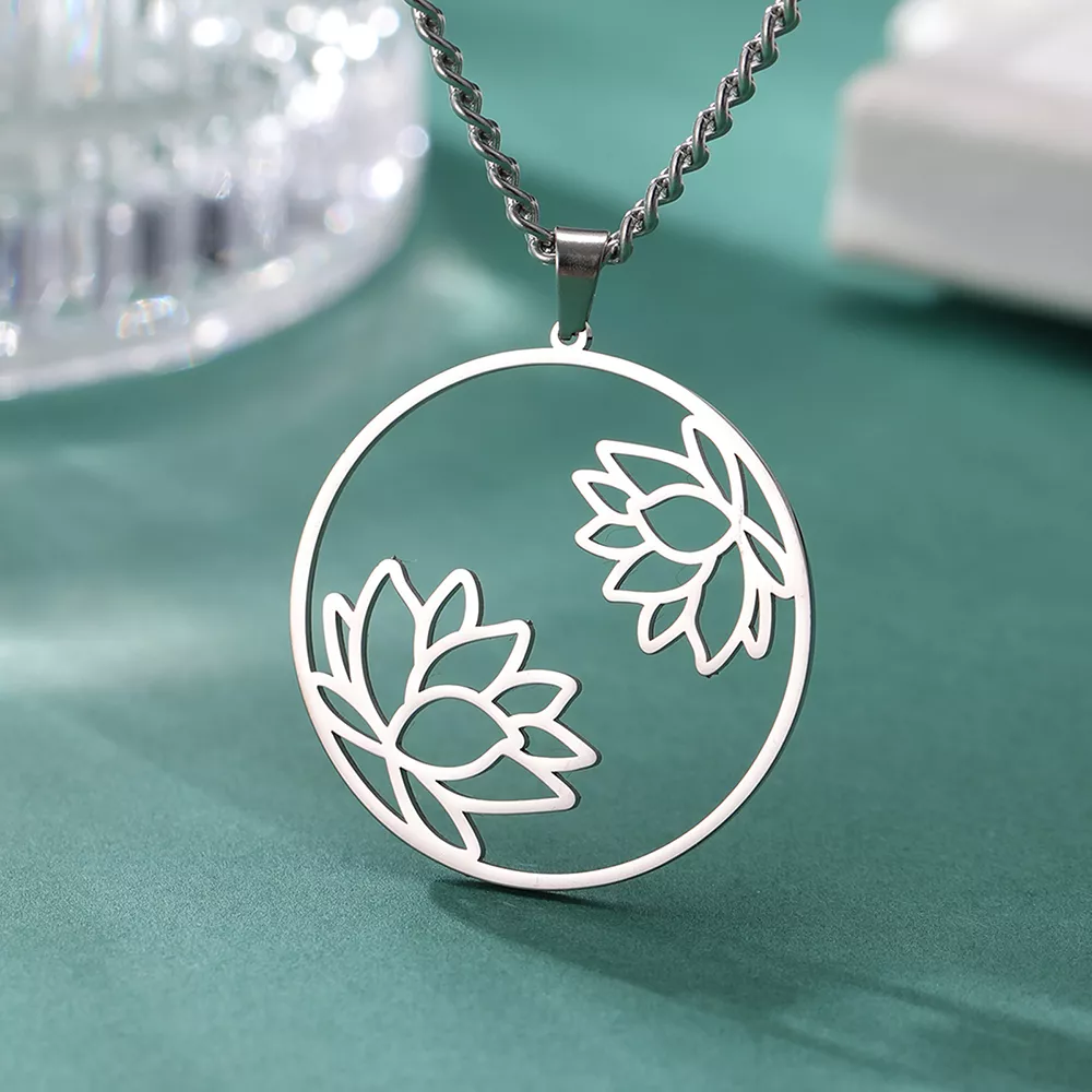 Lotus Flower Pendant Necklace for Women – Stainless Steel Buddhist Mandala Charm
