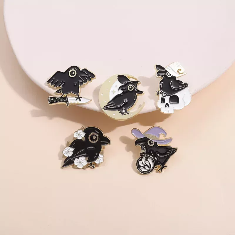 Black Punk Magic Bird Skull Wizard Enamel Pin