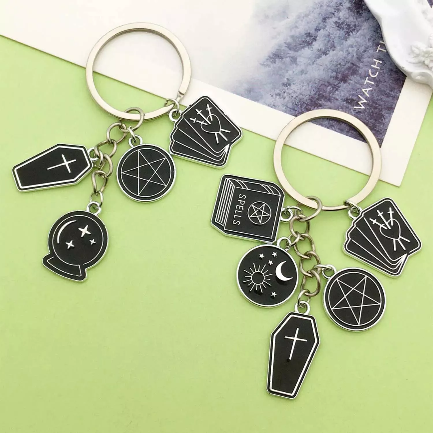 Fashion Tarot Keychain Black Magic Book Alloy Enamel Key Ring Ornament