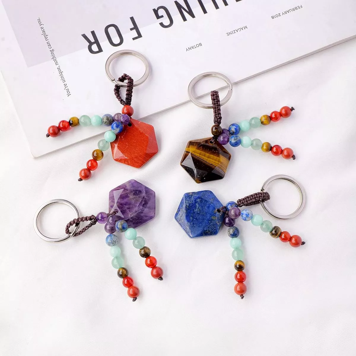 4pcs Set Natural Chakra Quartz Bead Keychains for DIY Jewelry & Luggage Pendants