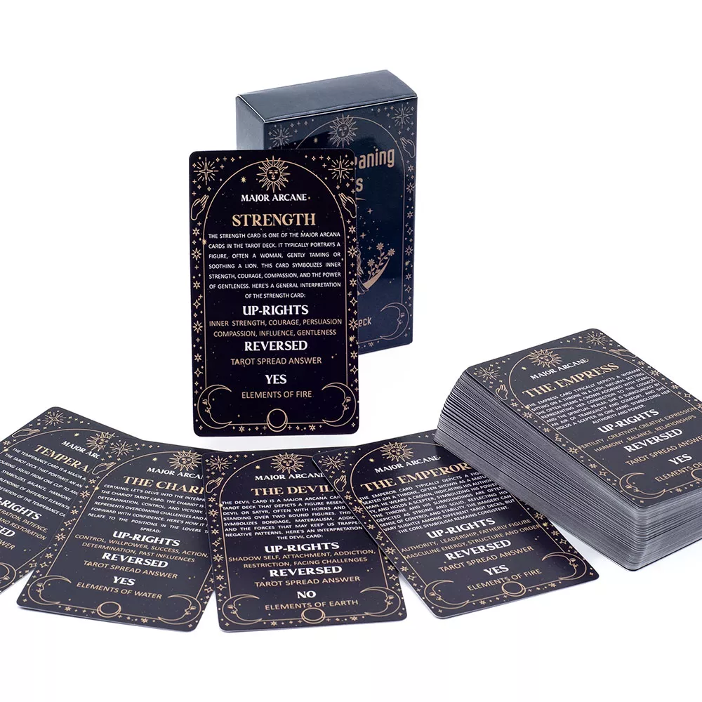 Ready to embark on a journey of self-discovery and divination? The Meaning Tarot Cards Deck is your gateway to unlocking the hidden meanings of the universe. With this deck in hand, you’ll feel empowered to tap into your intuition, explore your subconscious, and make more informed decisions. Start your tarot journey today and watch as the answers you seek unfold before your eyes.