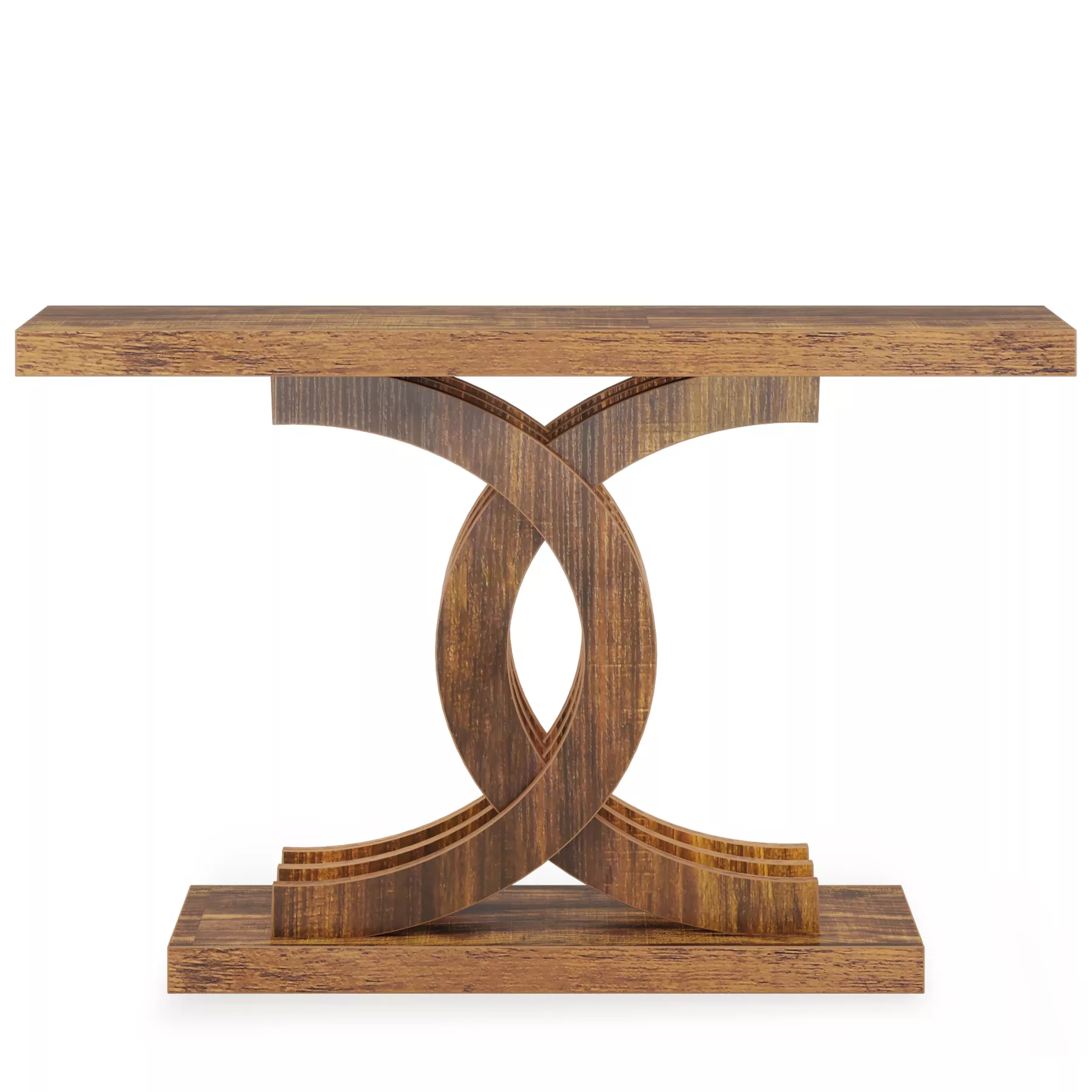 Looking to add a stylish yet practical accent to your home? This 39-inch Modern Farmhouse Console Table is the perfect blend of vintage character and modern simplicity. Designed with a warm brown finish and vivid wood grain detail, it brings cozy farmhouse vibes into any space. Whether placed in your entryway, behind a sofa, or in your hallway, this table stands out with its clean lines and unique geometric base that turns everyday furniture into a decorative centerpiece.