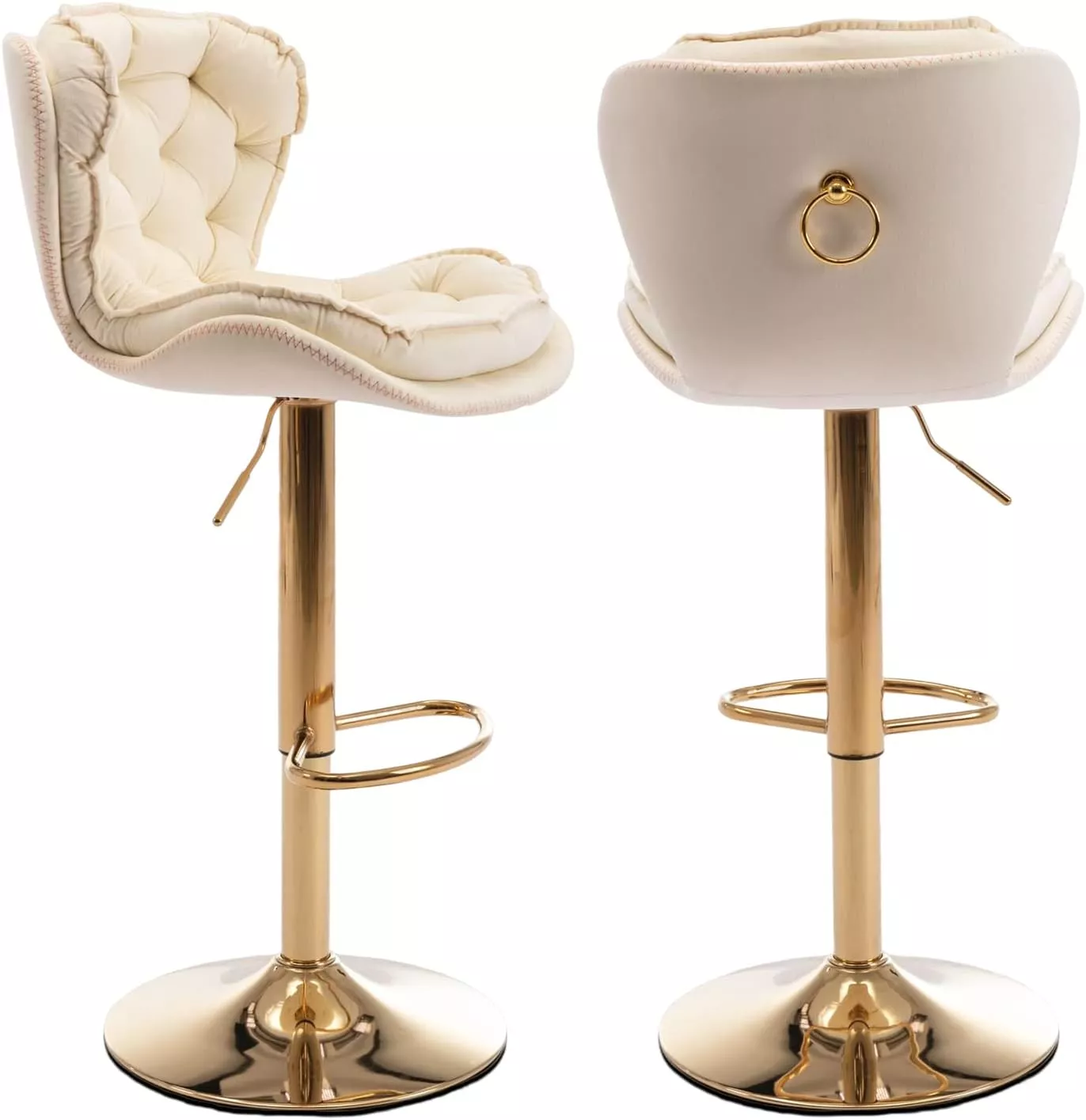Bring a touch of sophistication and comfort to your home with this Modern Swivel Velvet Bar Stool. Designed with a contemporary flair and crafted for both elegance and everyday use, this stool combines rich velvet upholstery with a gleaming gold hydraulic base for a look that’s as chic as it is functional. Whether you’re adding seating to your kitchen island, high-top dining table, or entertainment bar, this piece delivers standout style and seamless comfort.