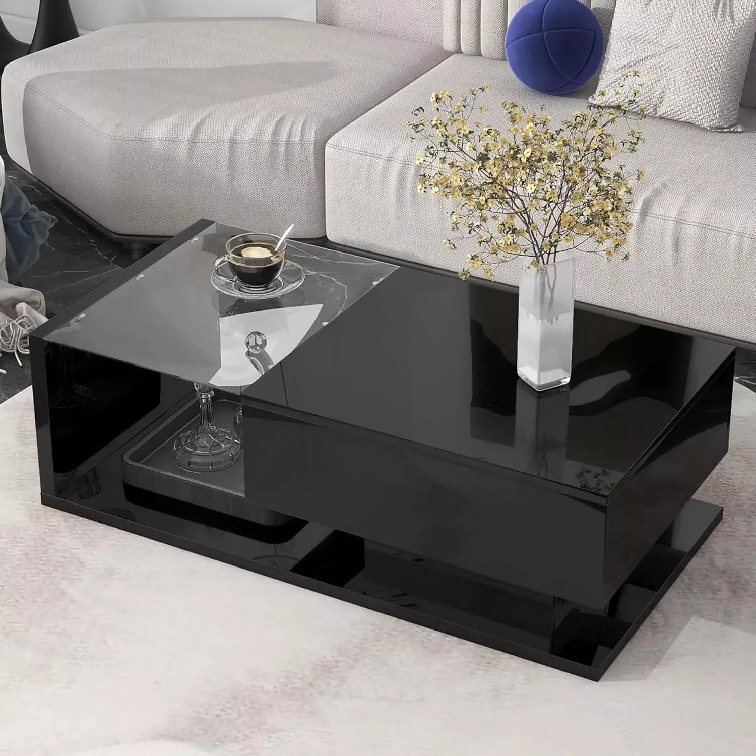 Designed to be both functional and stylish, this coffee table is an ideal addition to any modern home. Whether you’re entertaining guests or simply relaxing after a long day, this table offers the perfect balance of design and practicality. The combination of wood and glass creates a warm, inviting atmosphere while offering durability that stands the test of time. Plus, the easy-to-maintain high-gloss surface makes it ideal for busy households.