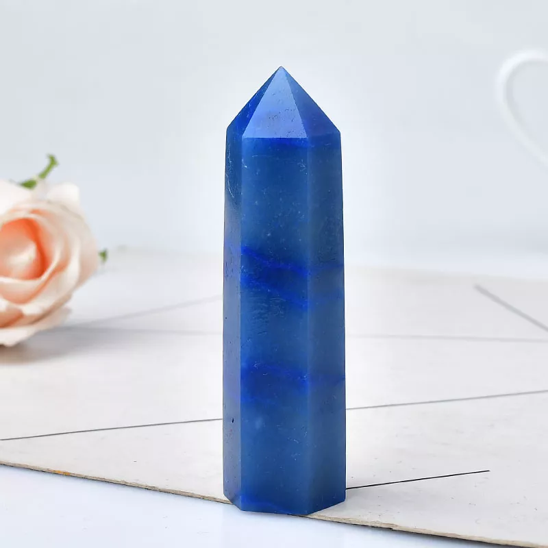 What makes this crystal point so special? Its pointed shape is designed to direct energy upward and outward, creating a focused energy field that promotes clarity and mental sharpness. Blue aventurine itself is associated with inner strength, self-discipline, and serenity—perfect for daily mindfulness or spiritual growth.
