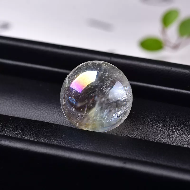 Natural Clear Quartz Aura Crystal Ball Rainbow Gemstone Healing Ornament