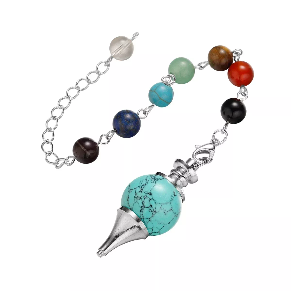 The Natural Crystal Ball Pendulum is more than just a beautiful accessory—it’s a powerful tool for spiritual connection and energy healing. The combination of turquoise and the seven chakra stones creates a harmonious energy that helps you tap into your inner wisdom. Whether you’re seeking guidance for love, family, or friendship, or you need insight into potential challenges, this pendulum provides clarity and guidance. Its unique, detachable design allows you to easily adapt it to your personal style or spiritual needs.