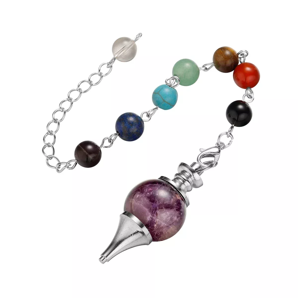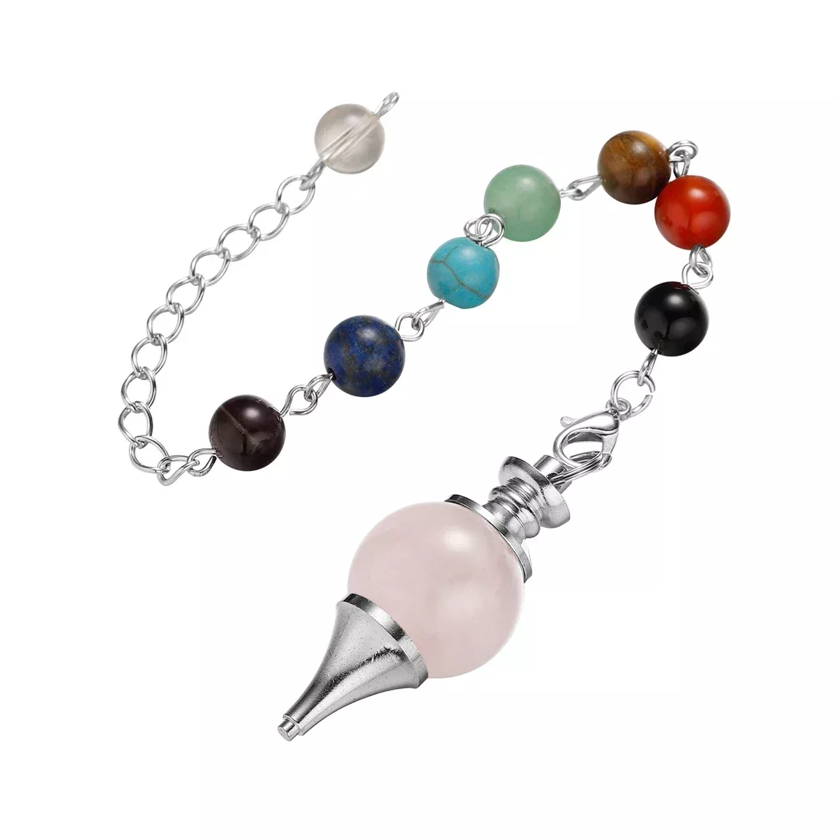 Natural Crystal Ball Pendulum with 7 Chakra Stones – Energy Balancing & Divination Tool