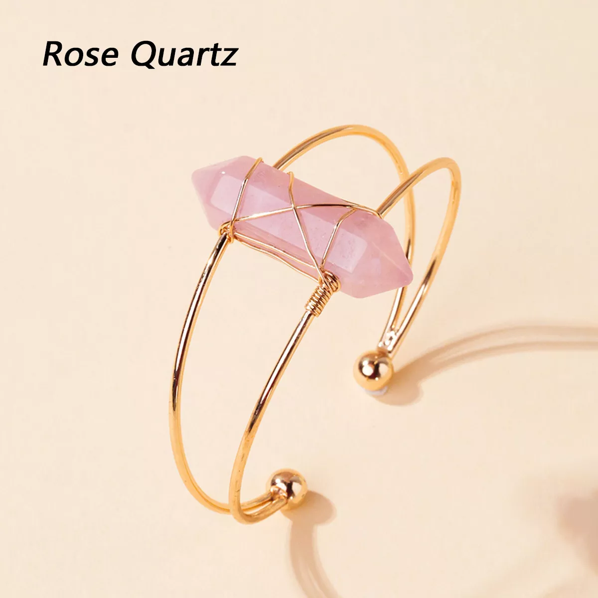 Natural Crystal Double Pointed Hex Prism Bracelet – Reiki Healing Energy Jewelry