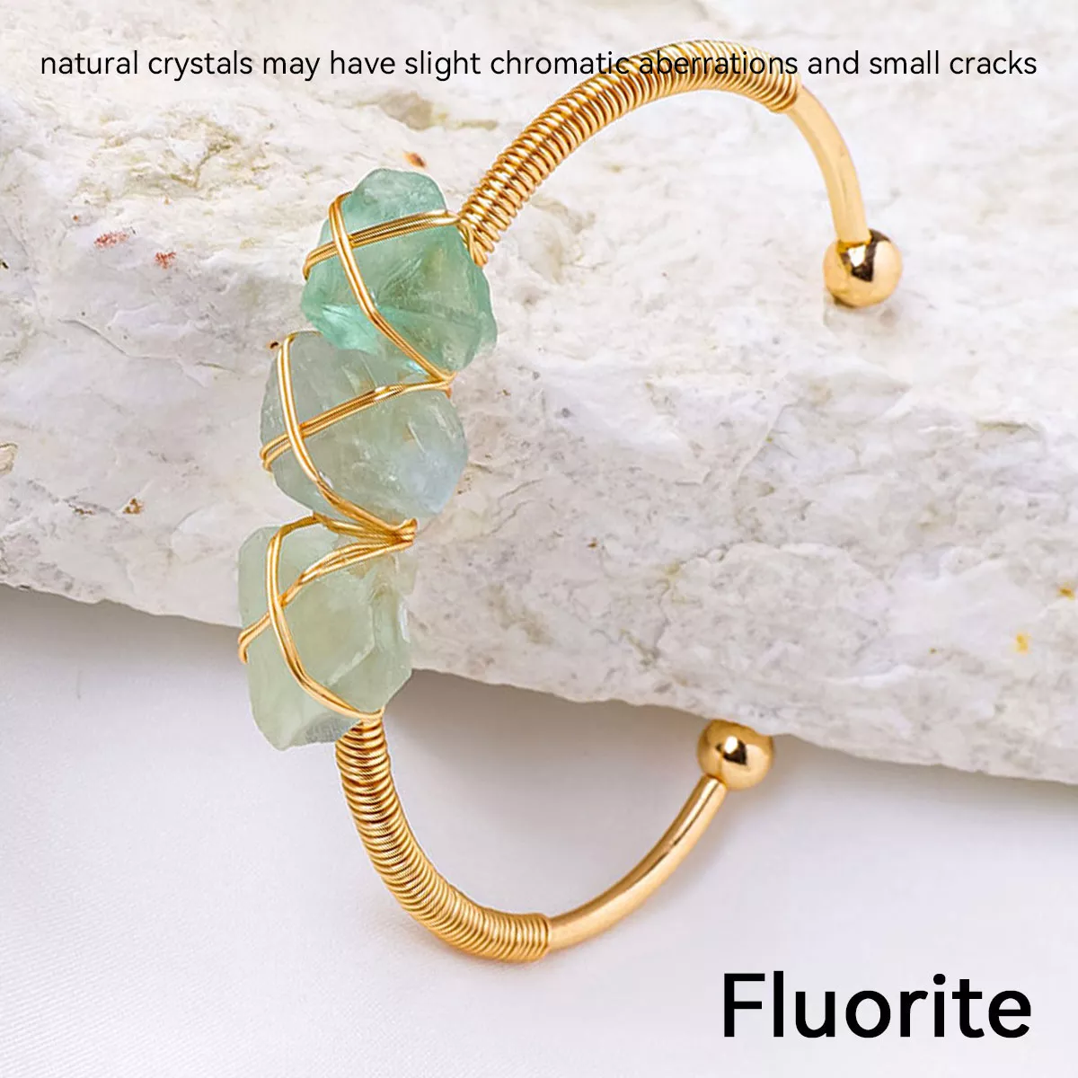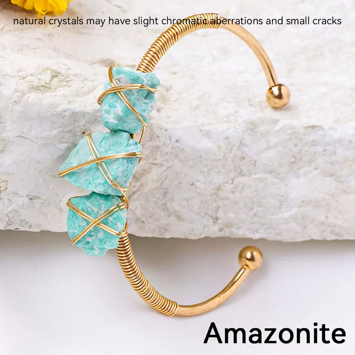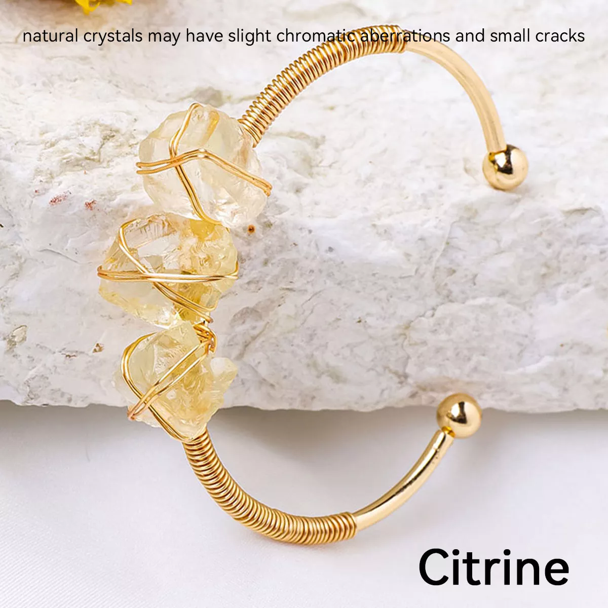 Elevate your style and energy with this exquisite Natural Crystal Rough Stone Bracelet, handcrafted with love and care. This beautiful open bracelet features irregular, raw crystal stones meticulously hand-woven with durable copper wire, offering a unique look that is both chic and earthy. Its natural beauty makes it the perfect accessory for any outfit, while also providing you with the positive, calming energy of natural crystals. Whether you wear it as a daily accessory or keep it as a meaningful collection piece, this bracelet is sure to make a statement.