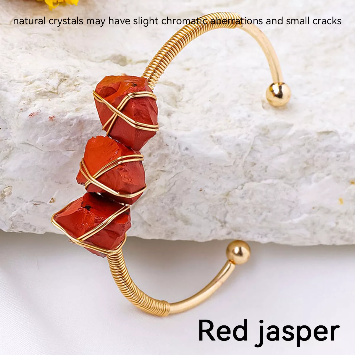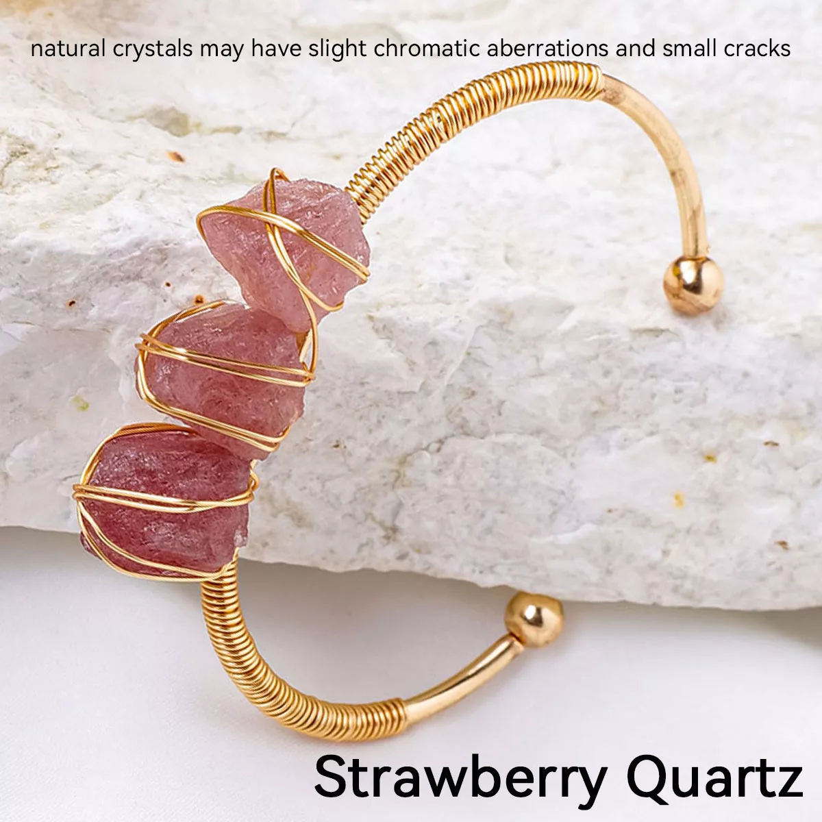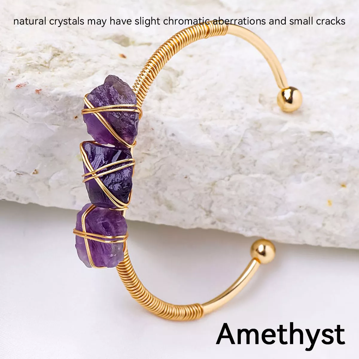 Elevate your style and energy with this exquisite Natural Crystal Rough Stone Bracelet, handcrafted with love and care. This beautiful open bracelet features irregular, raw crystal stones meticulously hand-woven with durable copper wire, offering a unique look that is both chic and earthy. Its natural beauty makes it the perfect accessory for any outfit, while also providing you with the positive, calming energy of natural crystals. Whether you wear it as a daily accessory or keep it as a meaningful collection piece, this bracelet is sure to make a statement.