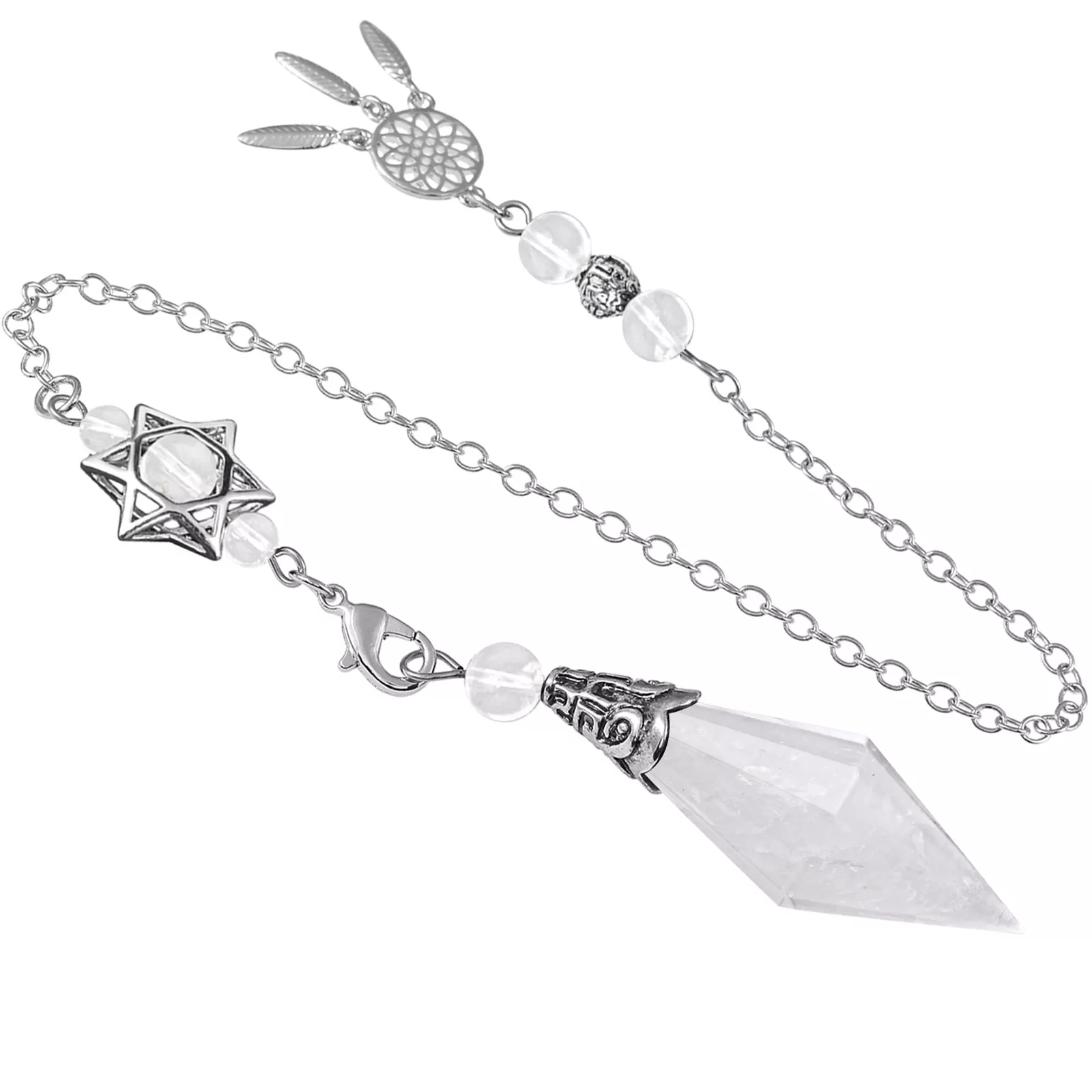 Discover the power of crystal healing and spiritual guidance with the Natural Rose Quartz Double Pointed Faceted Pendant. This exquisite pendulum combines the beauty of rose quartz with the mystical power of the Star of David and Dreamcatcher symbols. Perfect for divination, chakra balancing, and energy work, this pendant is not only a tool for spiritual practice but also a stunning piece of jewelry. With its 12-faceted crystal point, zinc alloy accents, and symbolic charms, this pendulum will elevate your spiritual journey and enhance your meditation or dowsing sessions.