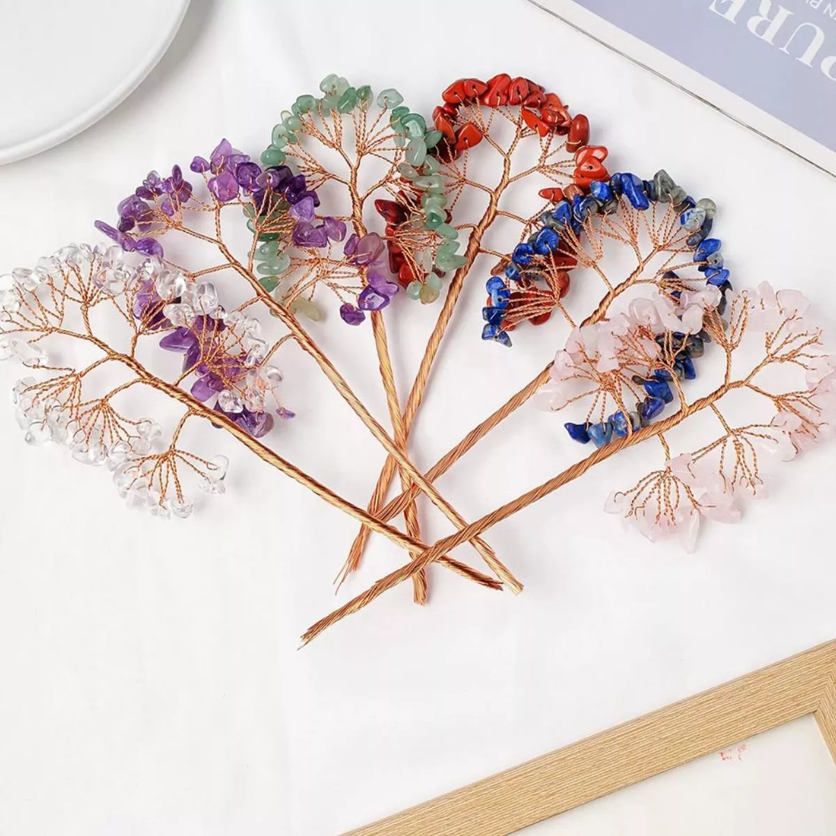 Natural Crystal Tree with Copper Wire – Handmade Healing Stone Desktop Ornament