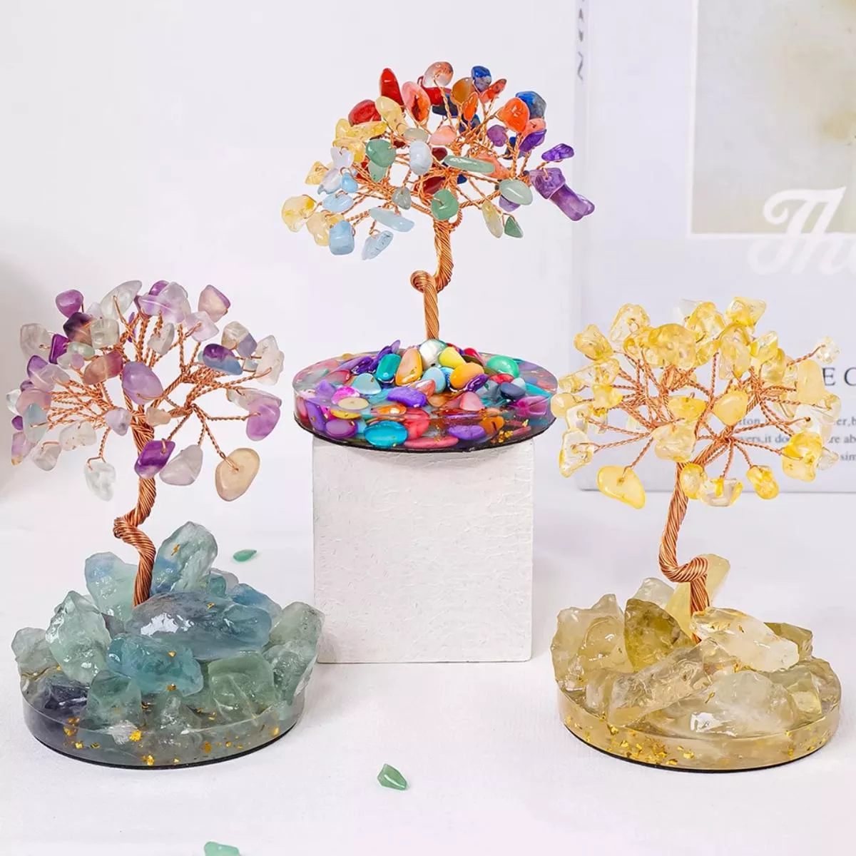 Crystal Tree with Natural Crushed Stone on Glass Base – Handwoven Home Decor