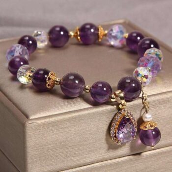 Enchanting Natural Amethyst and Water Drop Pendant Bracelet