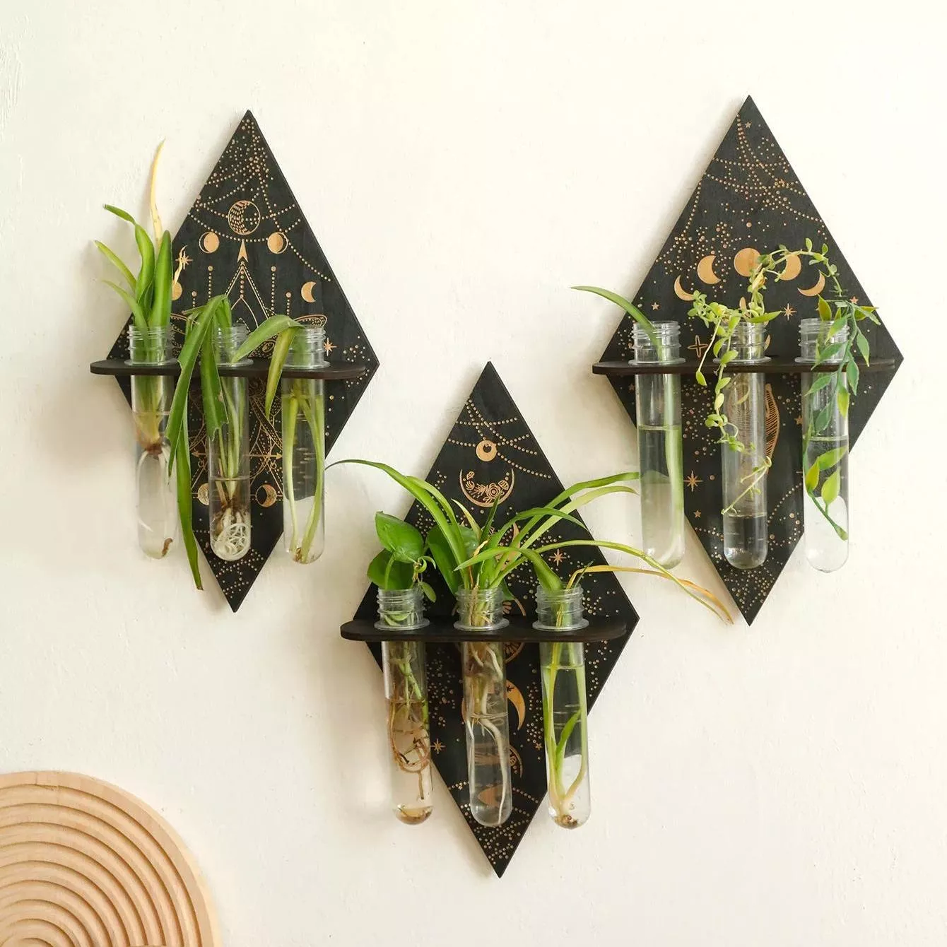 Hand of God Wooden Wall Planter with 3 Test Tubes