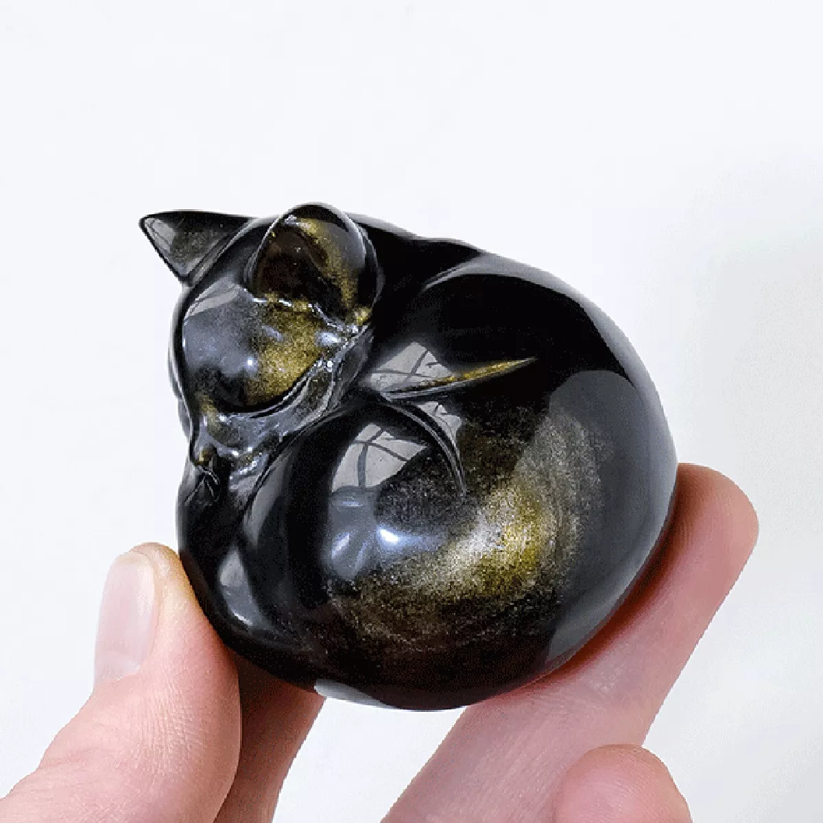 Golden Obsidian Crystal Sleeping Cat Figurine