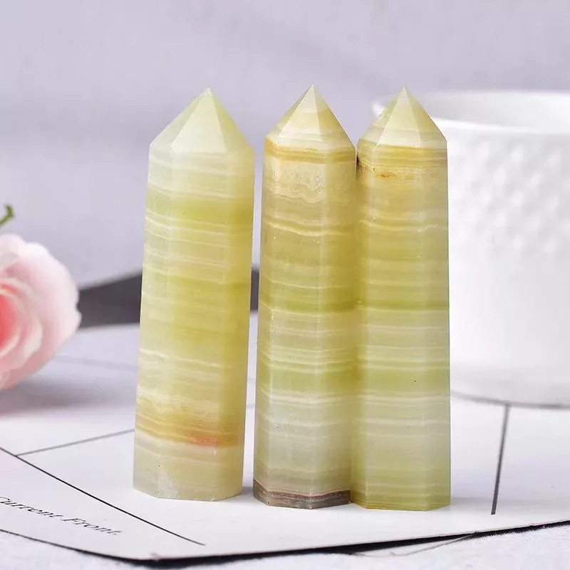 Natural Light Yellow Afghan Jade Crystal Point Healing Quartz Tower Wand