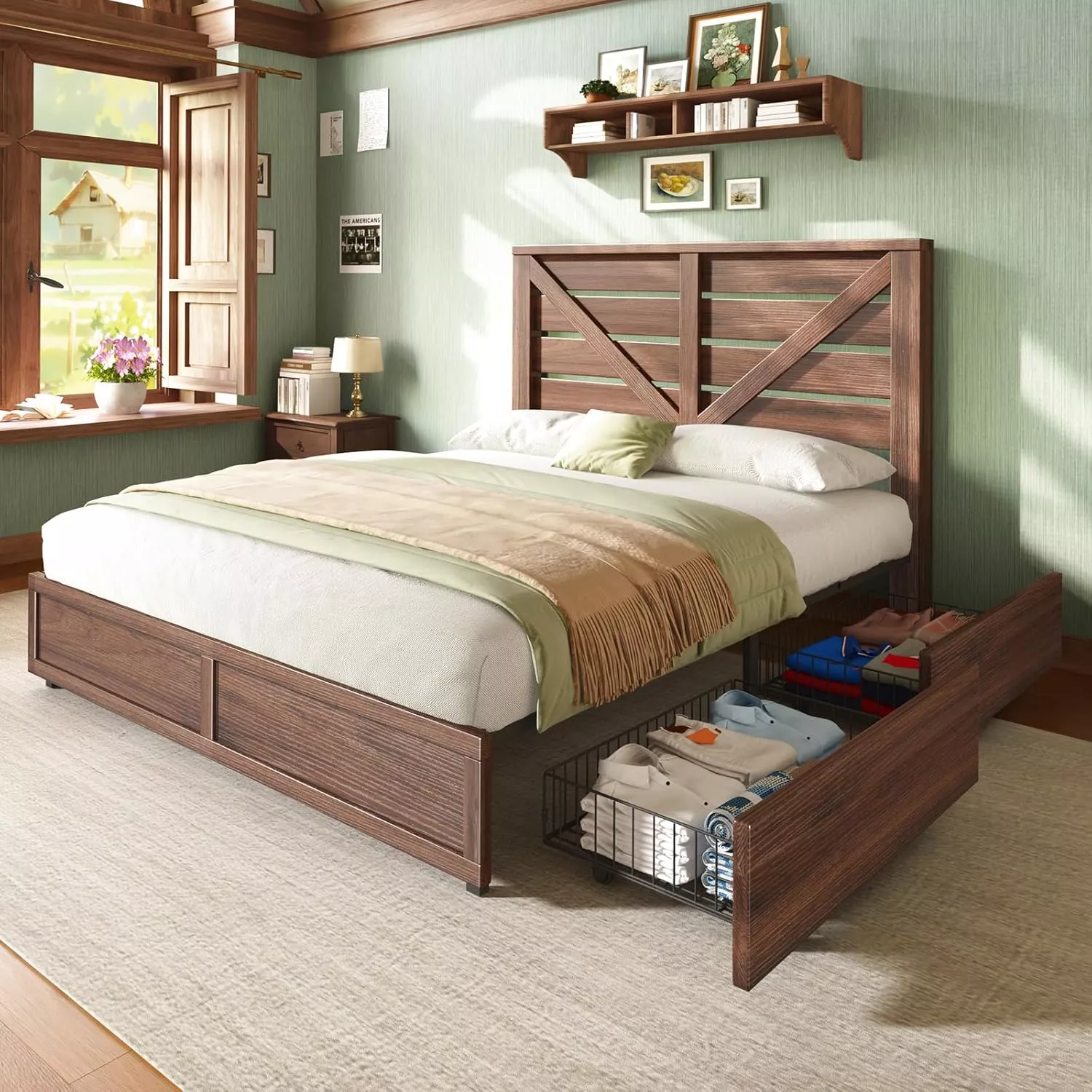 If you’re looking for a bed that offers style, function, and comfort, this queen-size farmhouse storage bed frame delivers on all fronts. It’s more than just a place to sleep—it’s a design statement with smart storage and lasting durability. Upgrade your space with a bed that blends rustic charm and modern practicality.