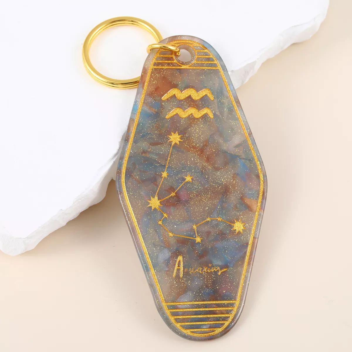 Add a personal touch of cosmic charm to your everyday accessories with the Retro Zodiac Glitter Motel Keychain. Inspired by the nostalgic design of vintage motel key tags, this dazzling keychain comes in twelve unique zodiac sign options, each hand-carved in bold detail and filled with shimmering glitter for that extra eye-catching sparkle. Made from durable acrylic, it’s lightweight yet sturdy—perfect for adding flair to your keys, bag, or gifting to someone special.