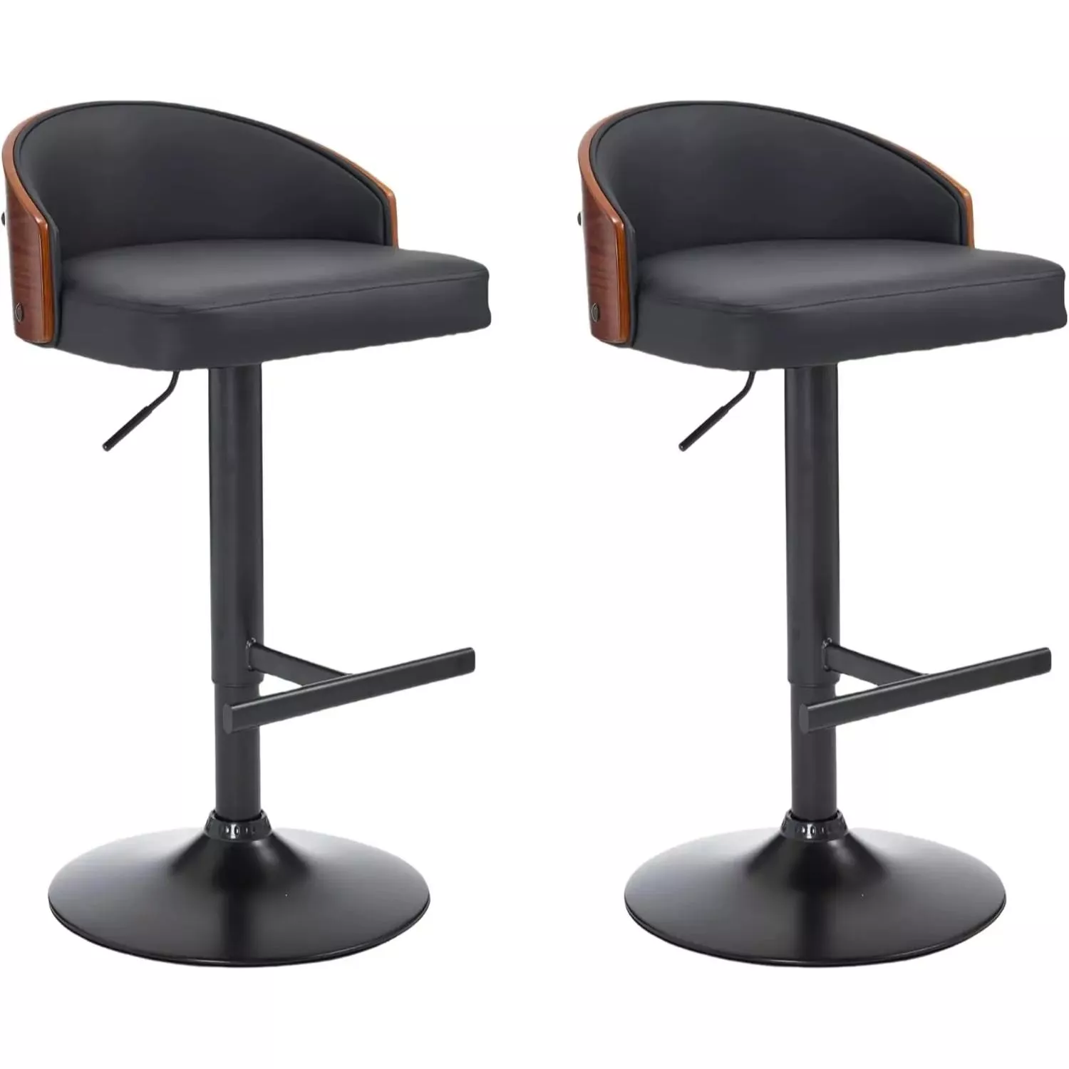 Set of 2 Adjustable Swivel Bar Stools, Cat Scratch Resistant Faux Leather, Wooden Backrest, Black Footrest