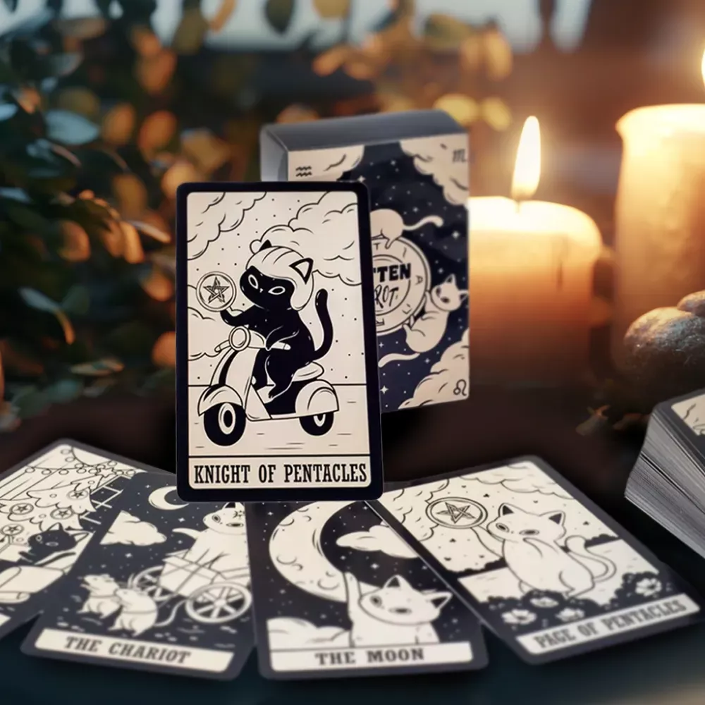 Kitten Tarot Deck – 78-Piece Cute Black and White Fortune Telling Cards for Beginners