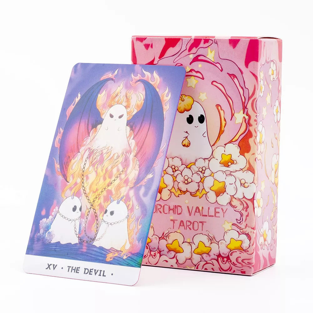 Orchid Valley Tarot 80-Card Cartoon Deck with Guidebook & Moonlit Ghosts Insights Board Game