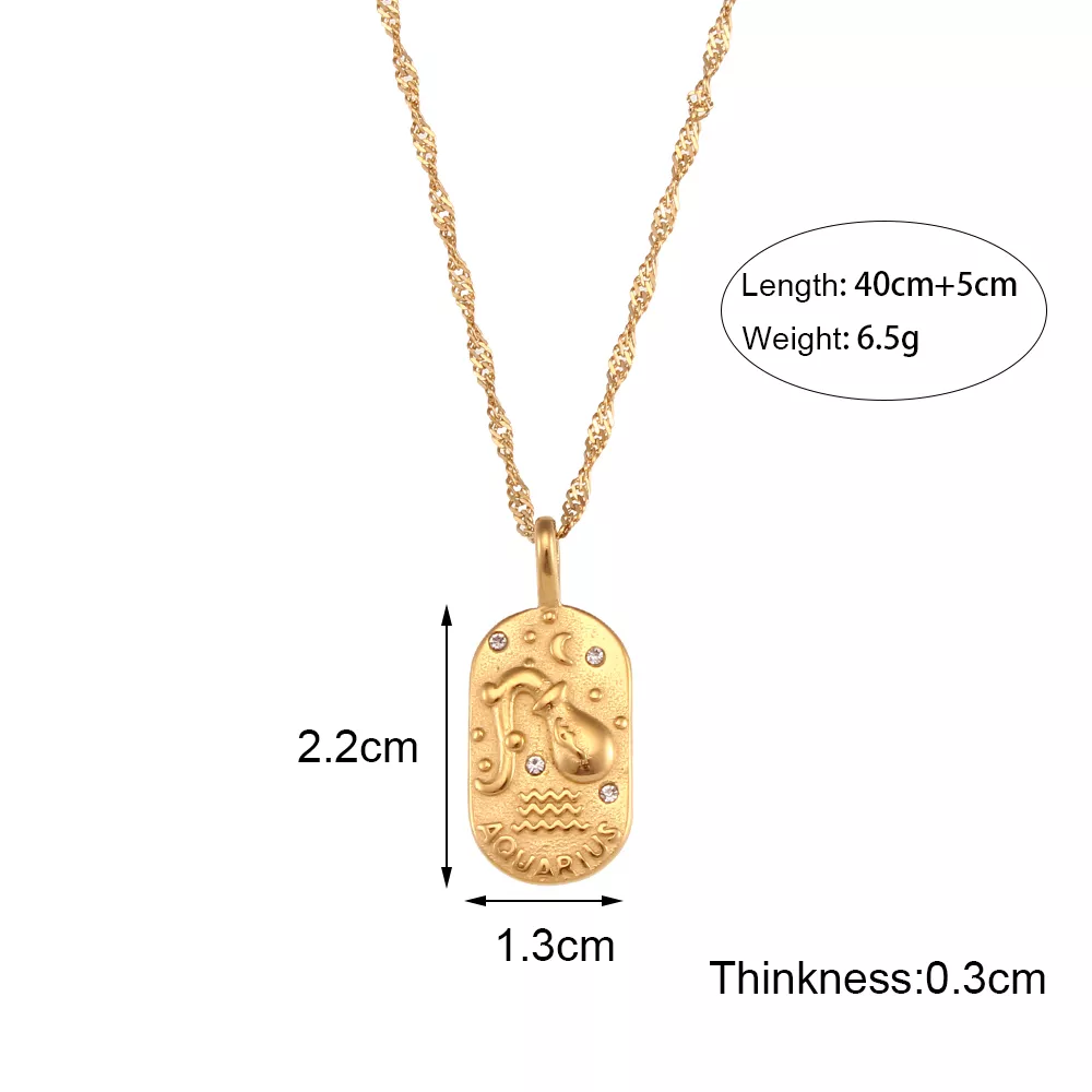 Trendy Stainless Steel 12 Zodiac Sign Pendant Necklace – Hypoallergenic & Stylish