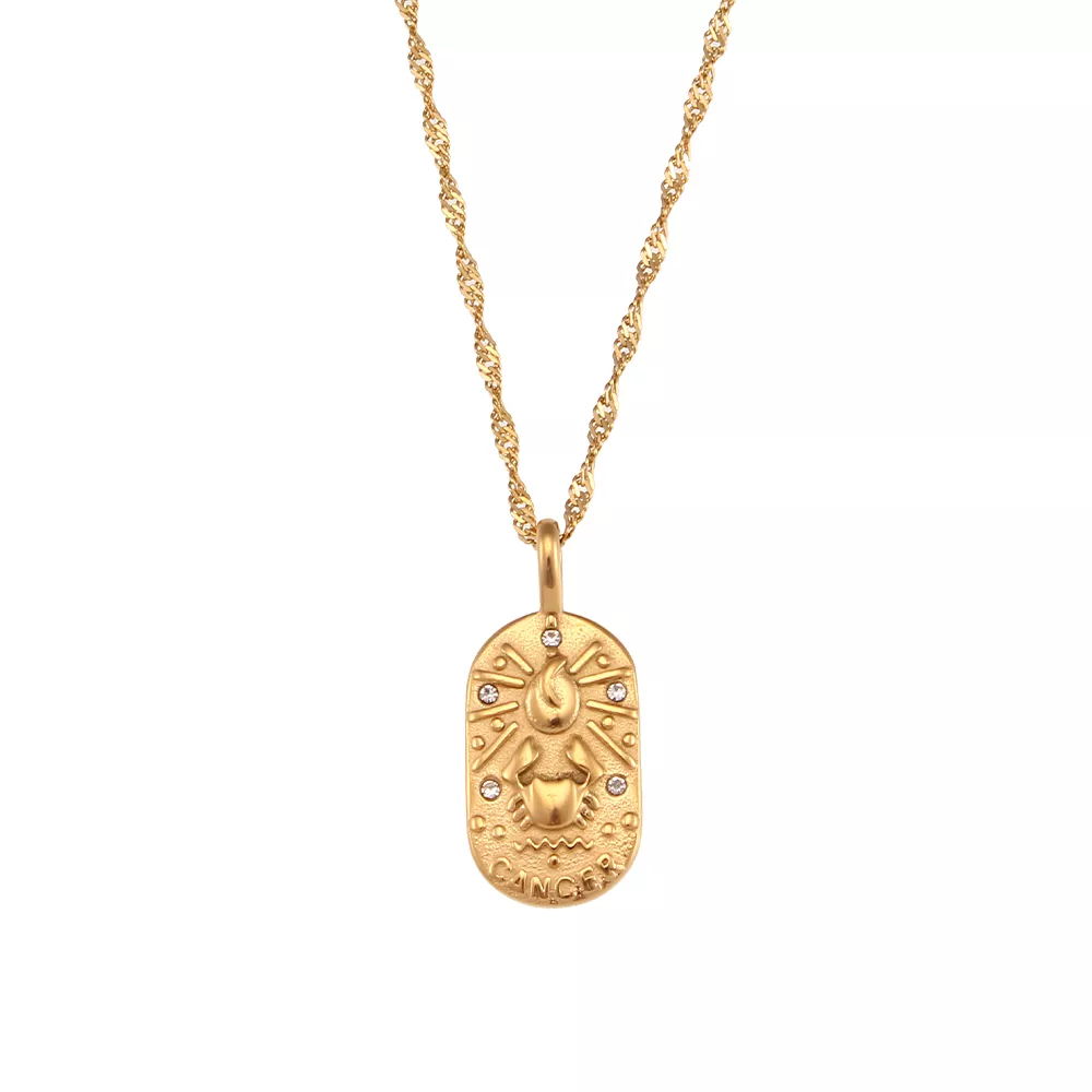 Embrace your unique personality with the stunning Zodiac Sign Necklace, designed to showcase your individuality and charm. Crafted with high-quality 316L stainless steel and plated with real 18k gold, this trendy necklace combines durability with elegance. With its timeless design and customizable zodiac sign pendant, this necklace is the perfect accessory to elevate your look for any occasion. Whether you’re heading out for a casual day or attending a glamorous event, this necklace adds a touch of personal flair and sophistication to your outfit.