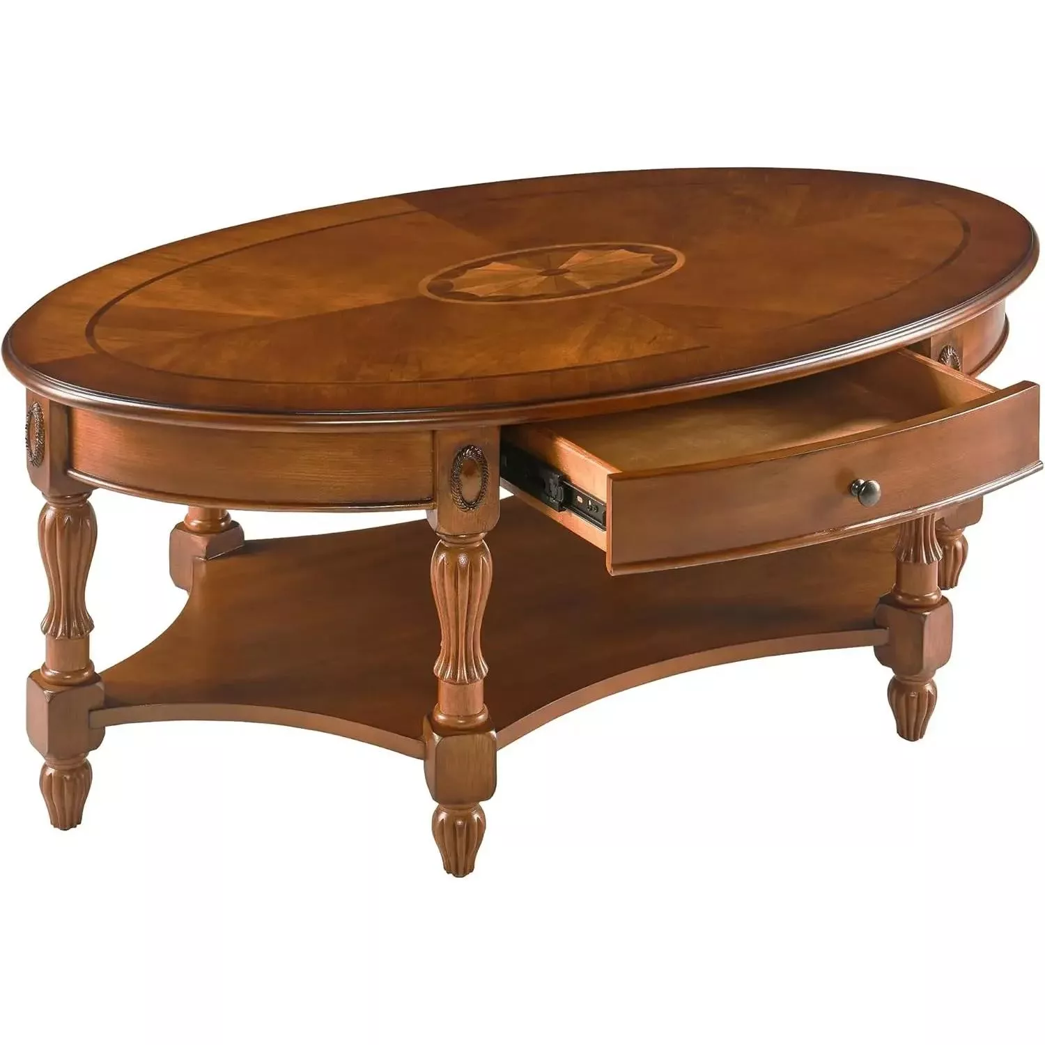 Transform your living room into a space of sophistication and charm with this Victorian-style oval coffee table. Crafted from solid cherry wood, this table blends antique elegance with modern functionality, making it a perfect addition to any traditional or vintage-inspired home. The table’s gracefully sculpted legs and beautifully painted tabletop exude a stately appeal, ensuring it becomes a focal point of any room.