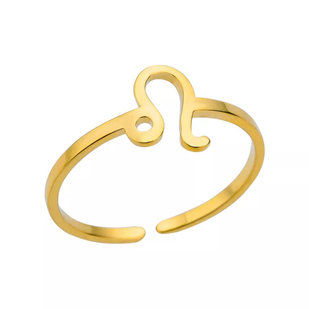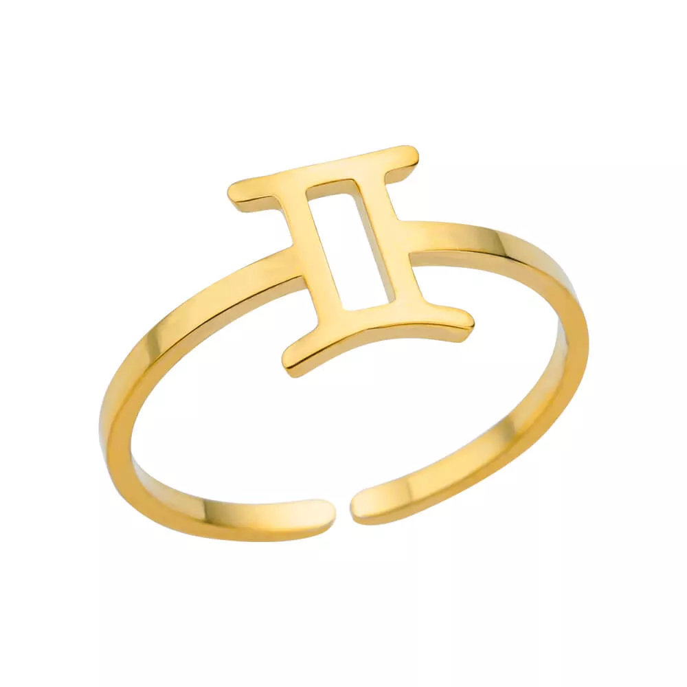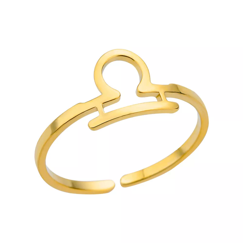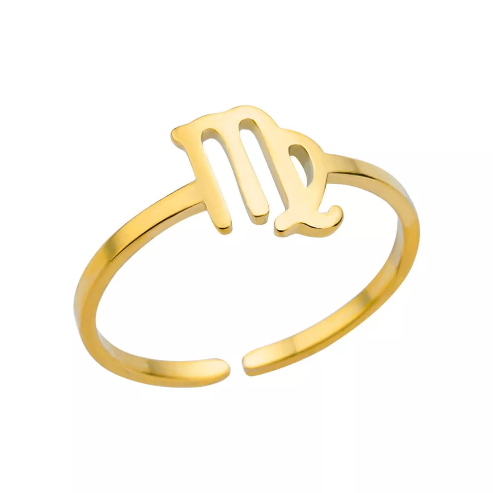Vintage Zodiac Sign Gold Stainless Steel Adjustable Ring for Women – 12 Constellations