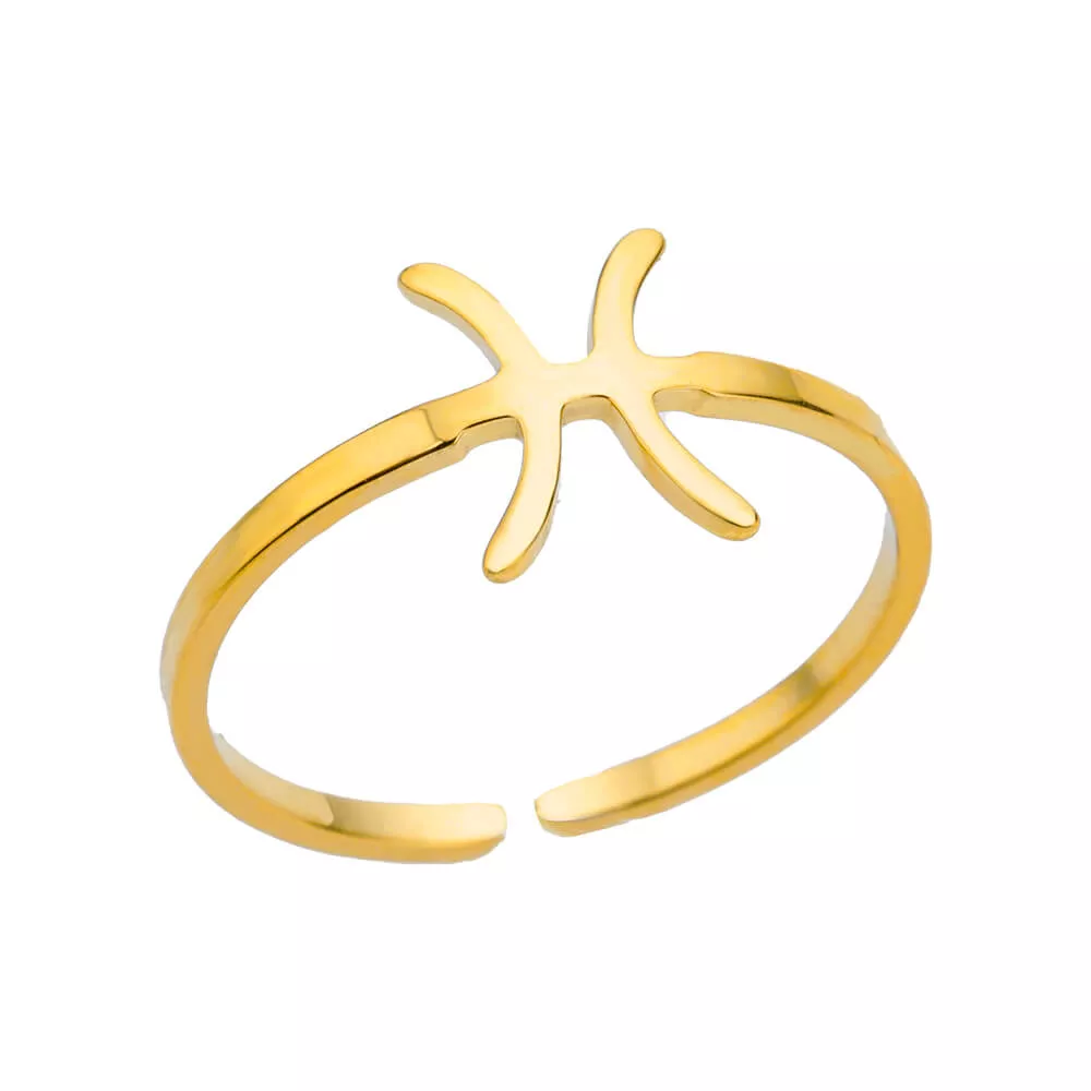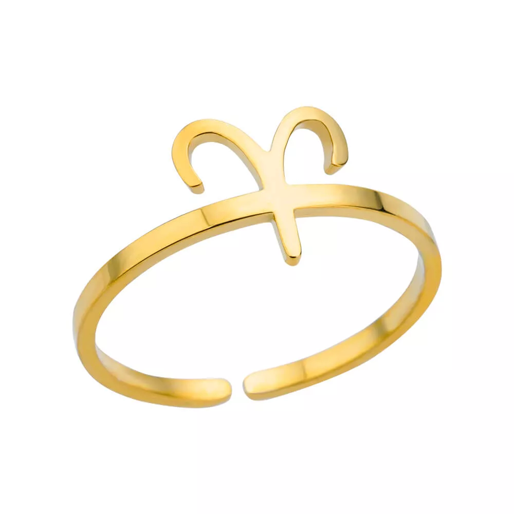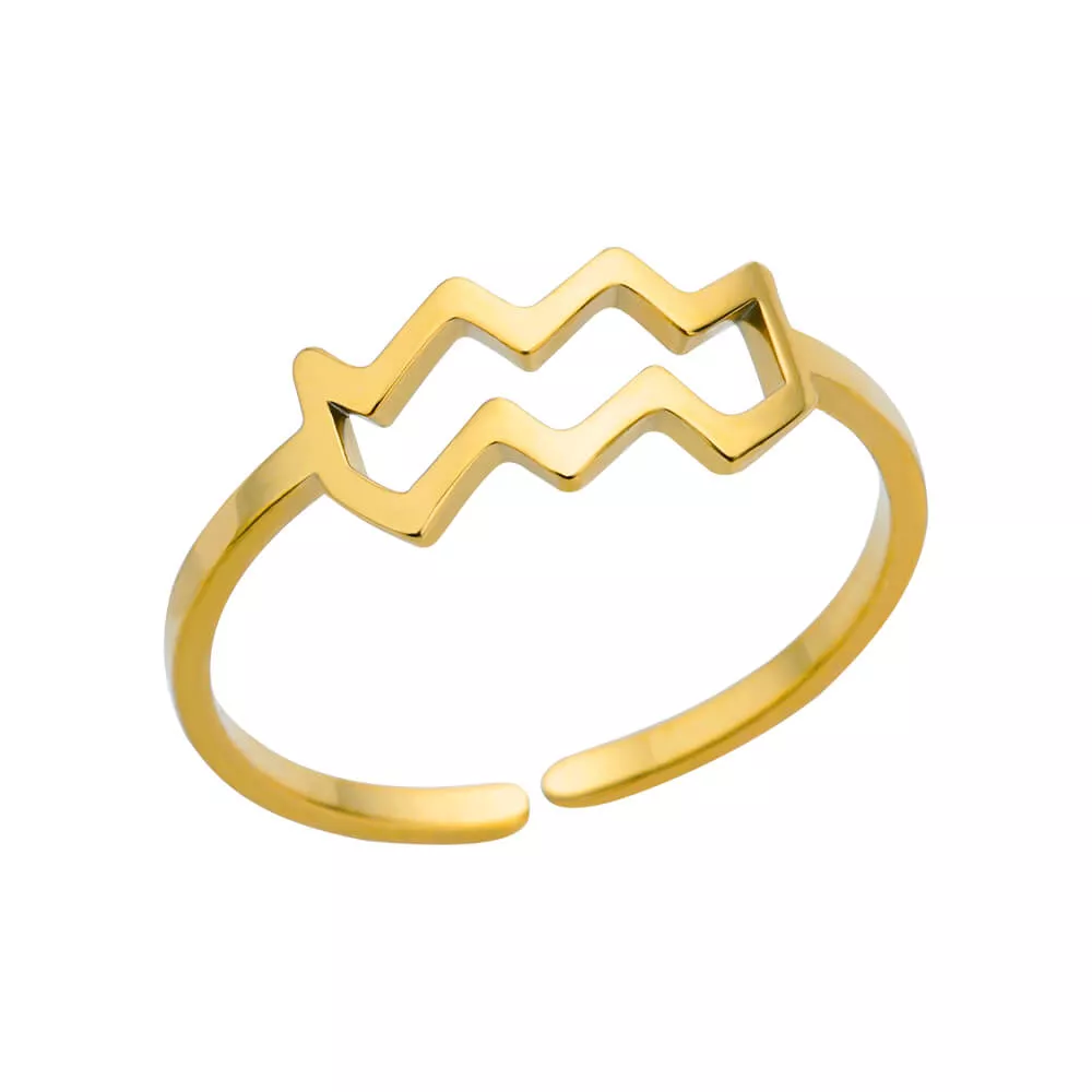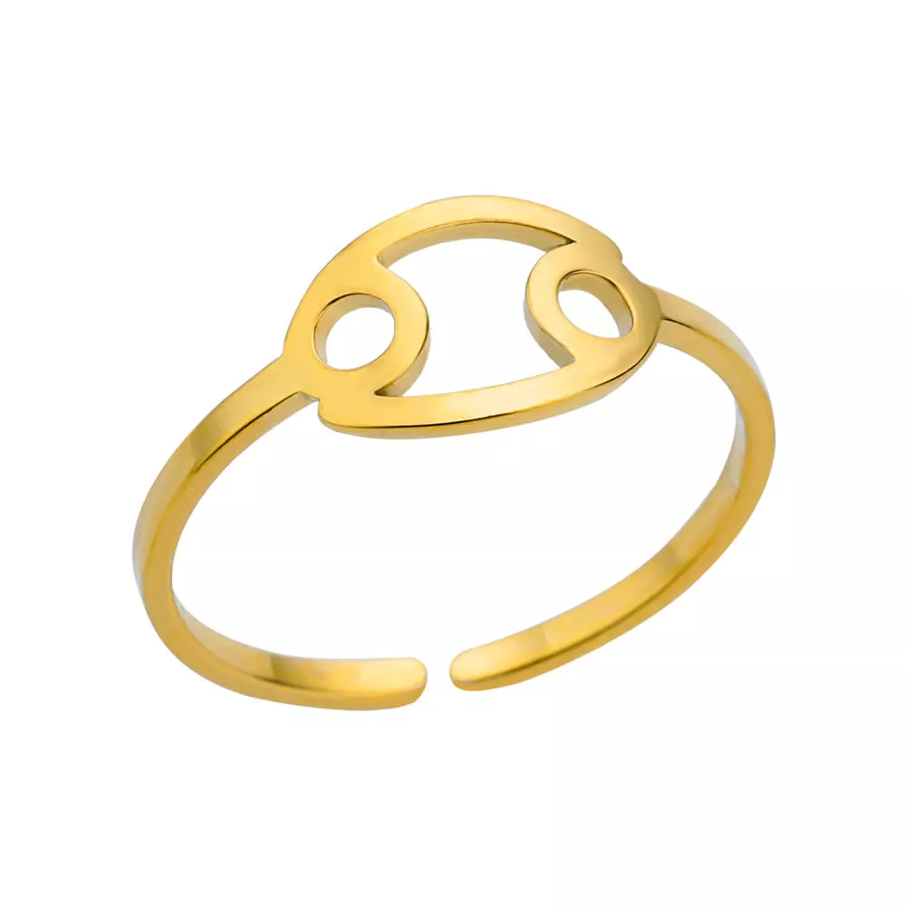 Vintage Zodiac Sign Gold Stainless Steel Adjustable Ring for Women – 12 Constellations